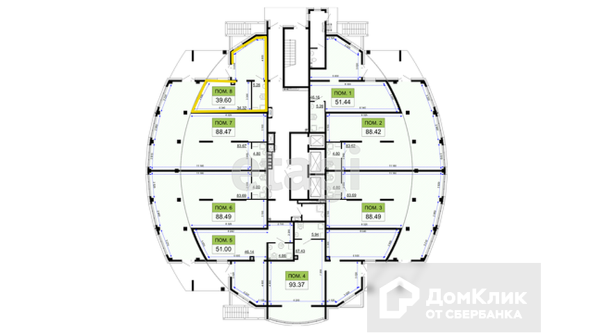 Общая площадь 39.6 м2