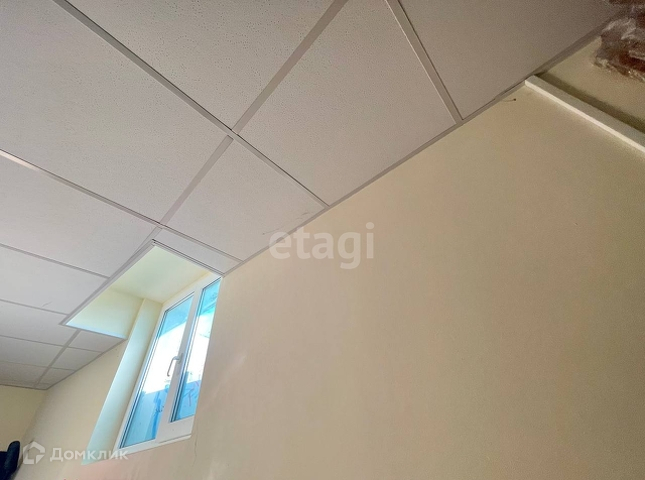 На полу плитка, потолок армстронг, есть 2 фанкойла.