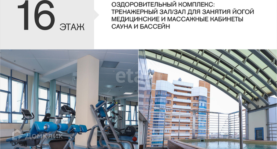 Оздоровительный комплекс: тренажерный зал/зал для занятий йогой, медицинские и массажные кабинеты, сауна, бассейн