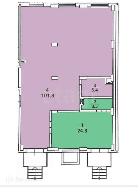 Есть возможность разделить на два помещения, площадью 24 кв.м и 100 кв.м.
