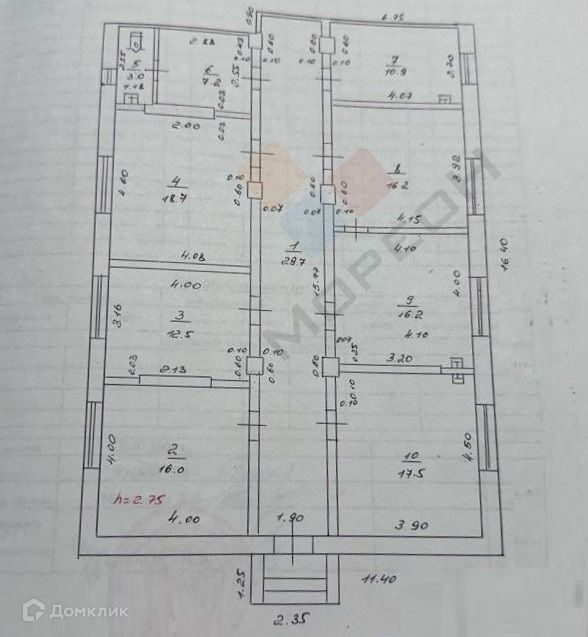 Высота потолков 2.75 м