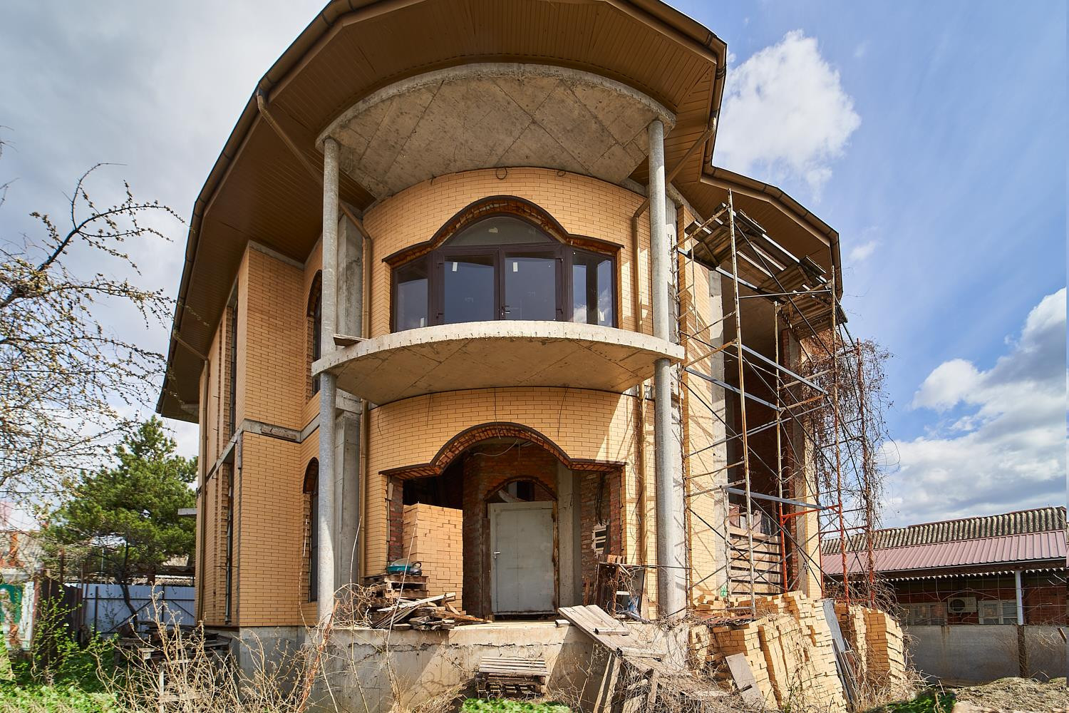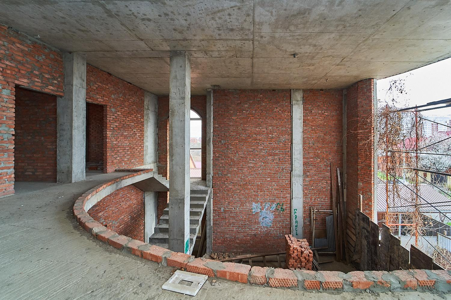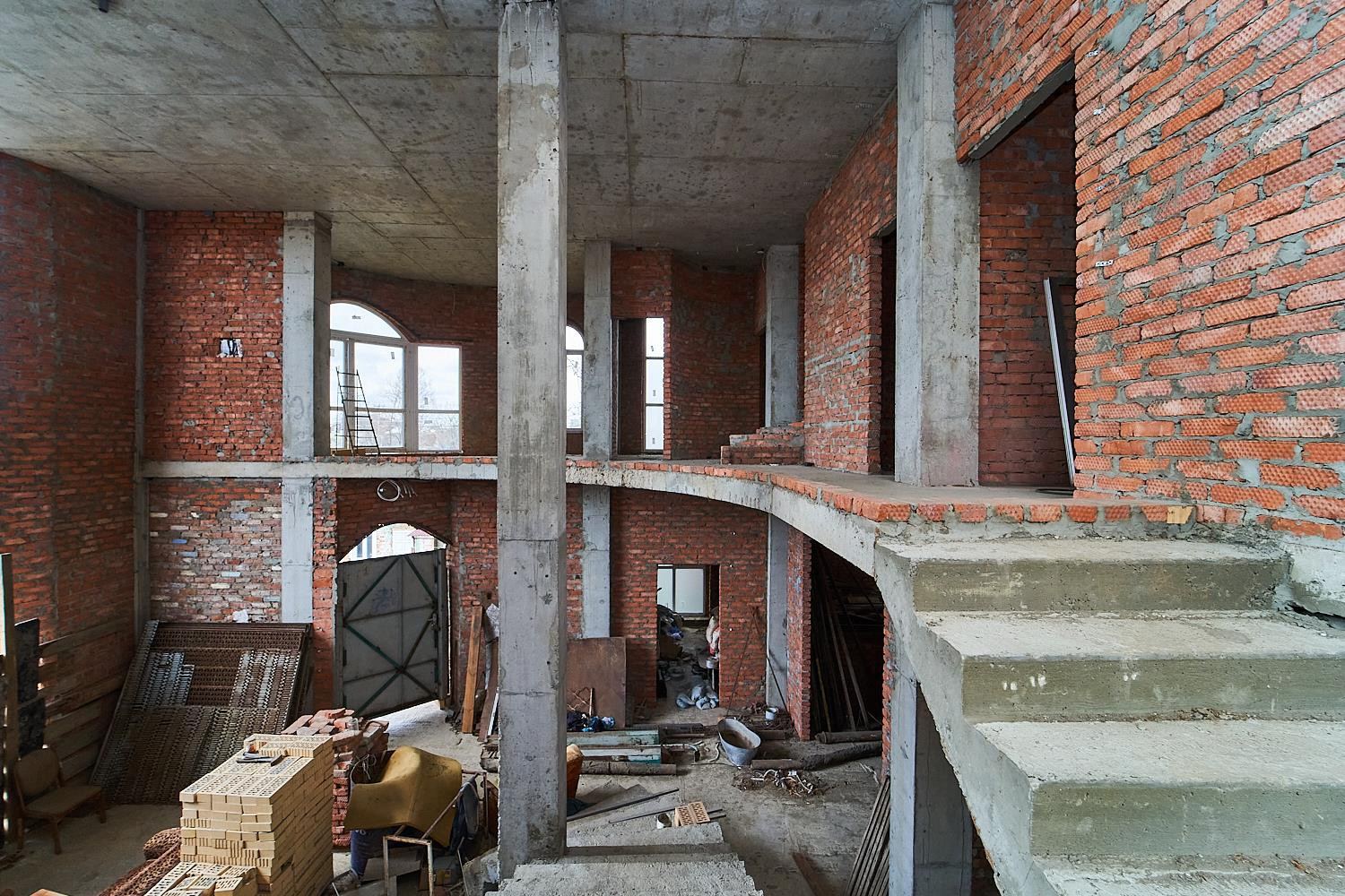 Площадь 750 м2. 1 этаж (высота потолков 3,5 метра), 2 этаж (высота потолков 3,3 метра) плюс цокольный этаж (высота потолков 3 метра) и мансарда. Строительство велось из качественных материалов: кирпич липецкий, монолитные перекрытия на всех этажах.