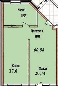 Общая площадь 60.88 м2