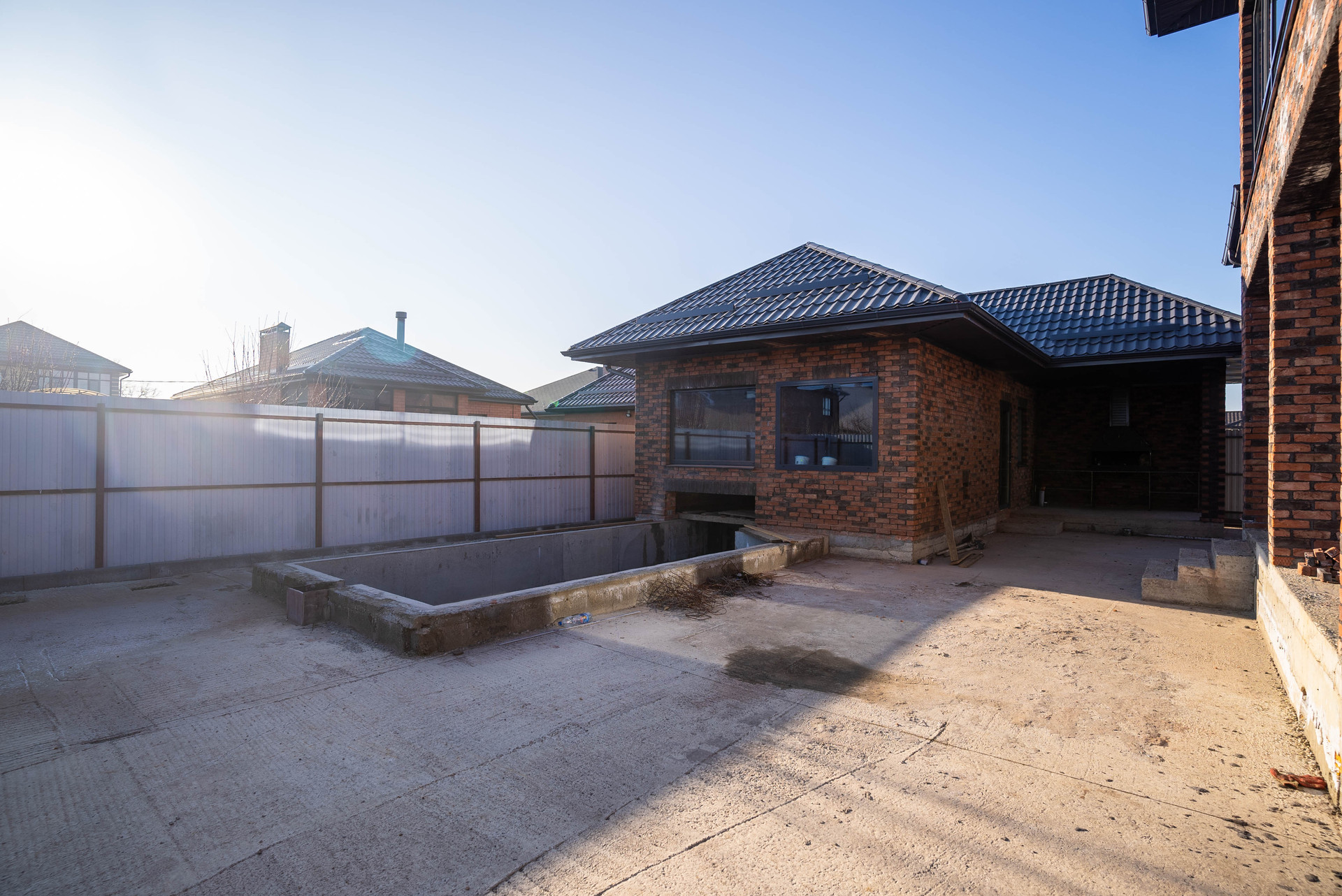 На территории, также, возведена отдельно стоящая баня и бассейн!