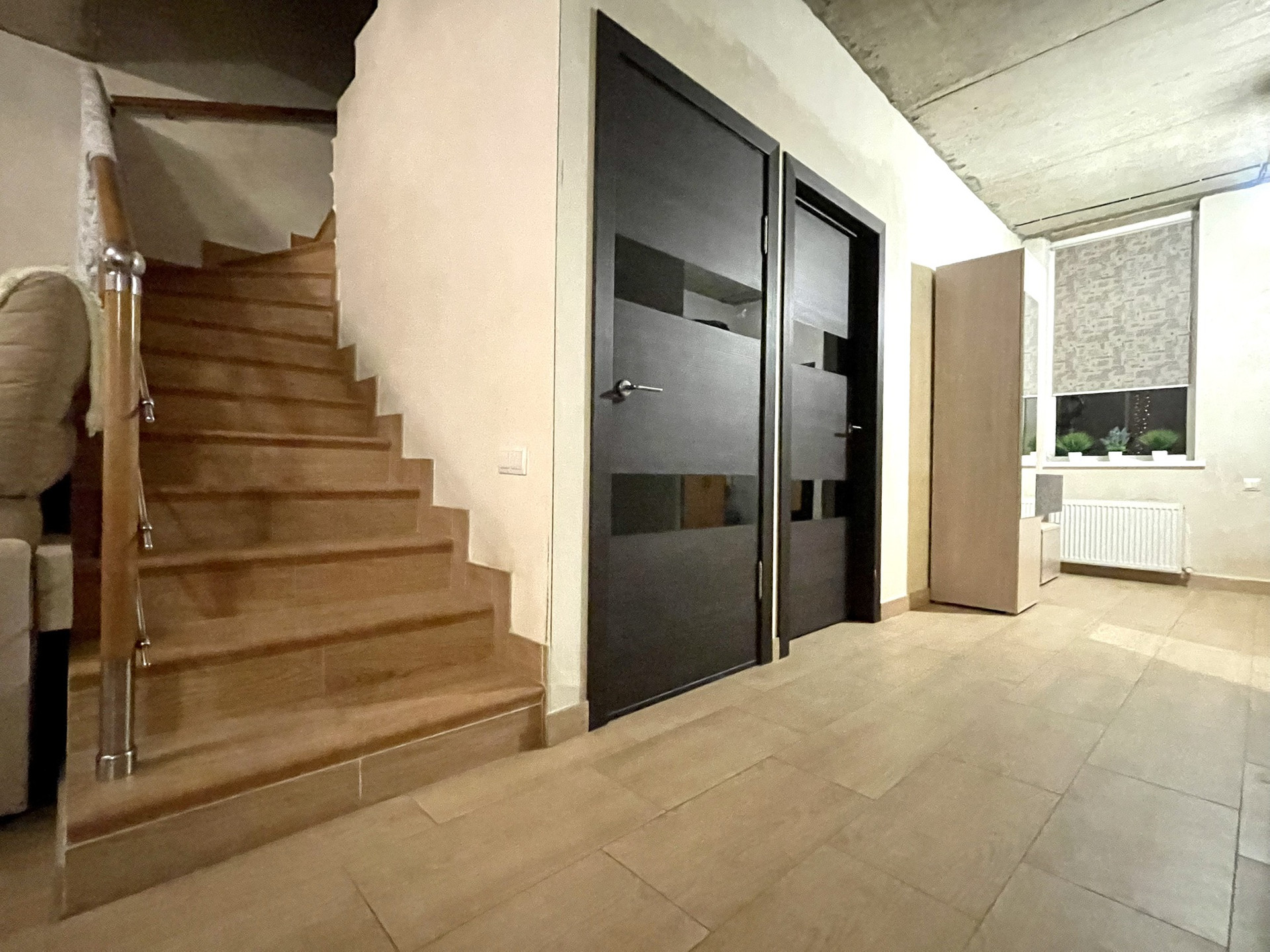 В тауне большие окна «в потолок». На первом этаже - сплит-система.