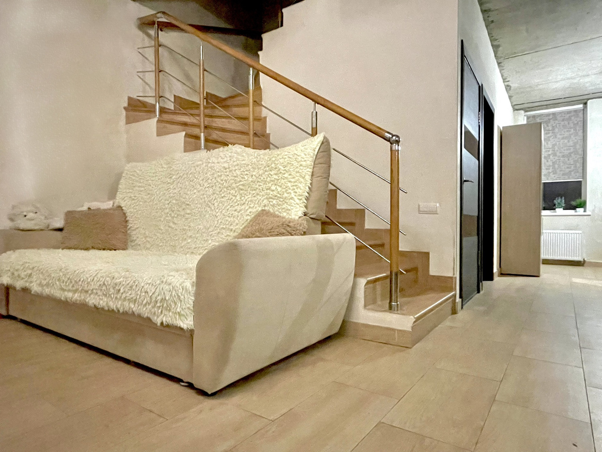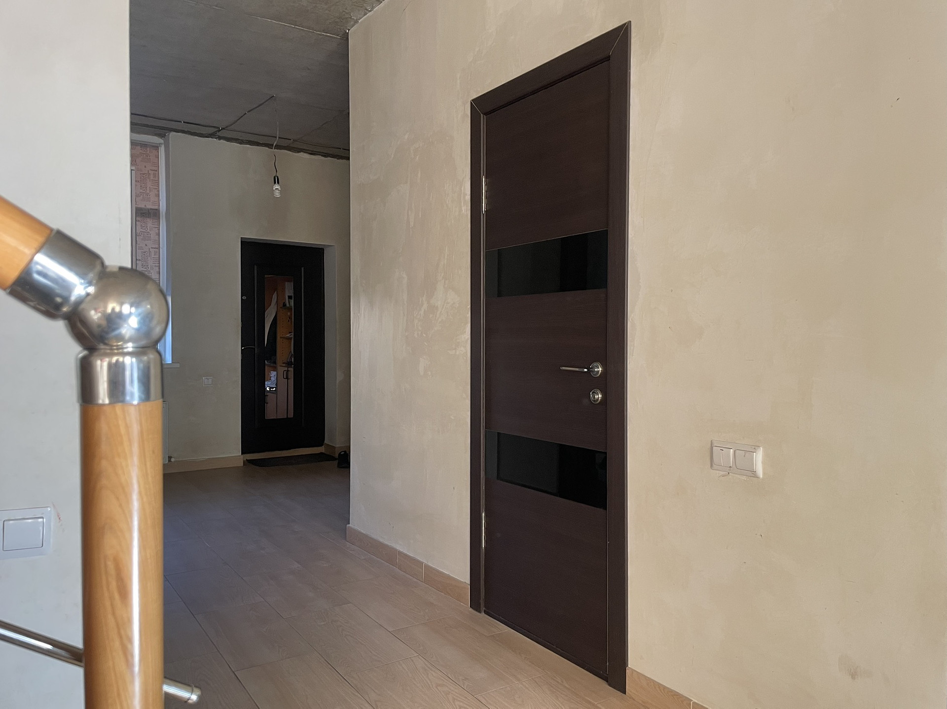 Ремонт в доме не закончен, но выполнены самые трудоемкие и дорогостоящие работы: укладка полов 1 этажа и всего лестничного марша (до 3 этажа включительно) керамогранитом. Пригласительное крыльцо - клинкерные ступени. Крыльцо в зону барбекю и балконы - керамогранит + декоративная уличная плитка.