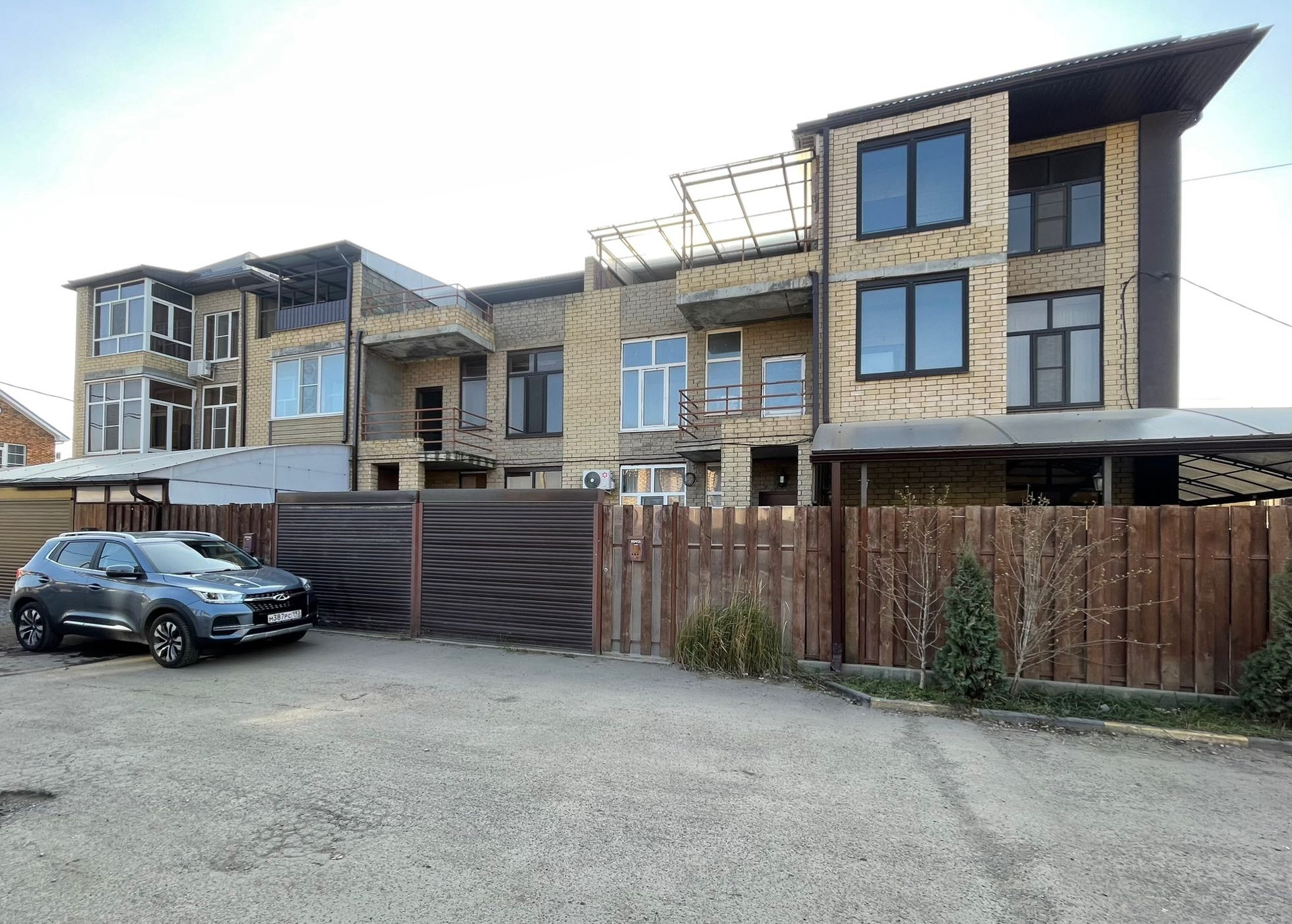 Фасад - индивидуальная парковка с роллеными воротами.