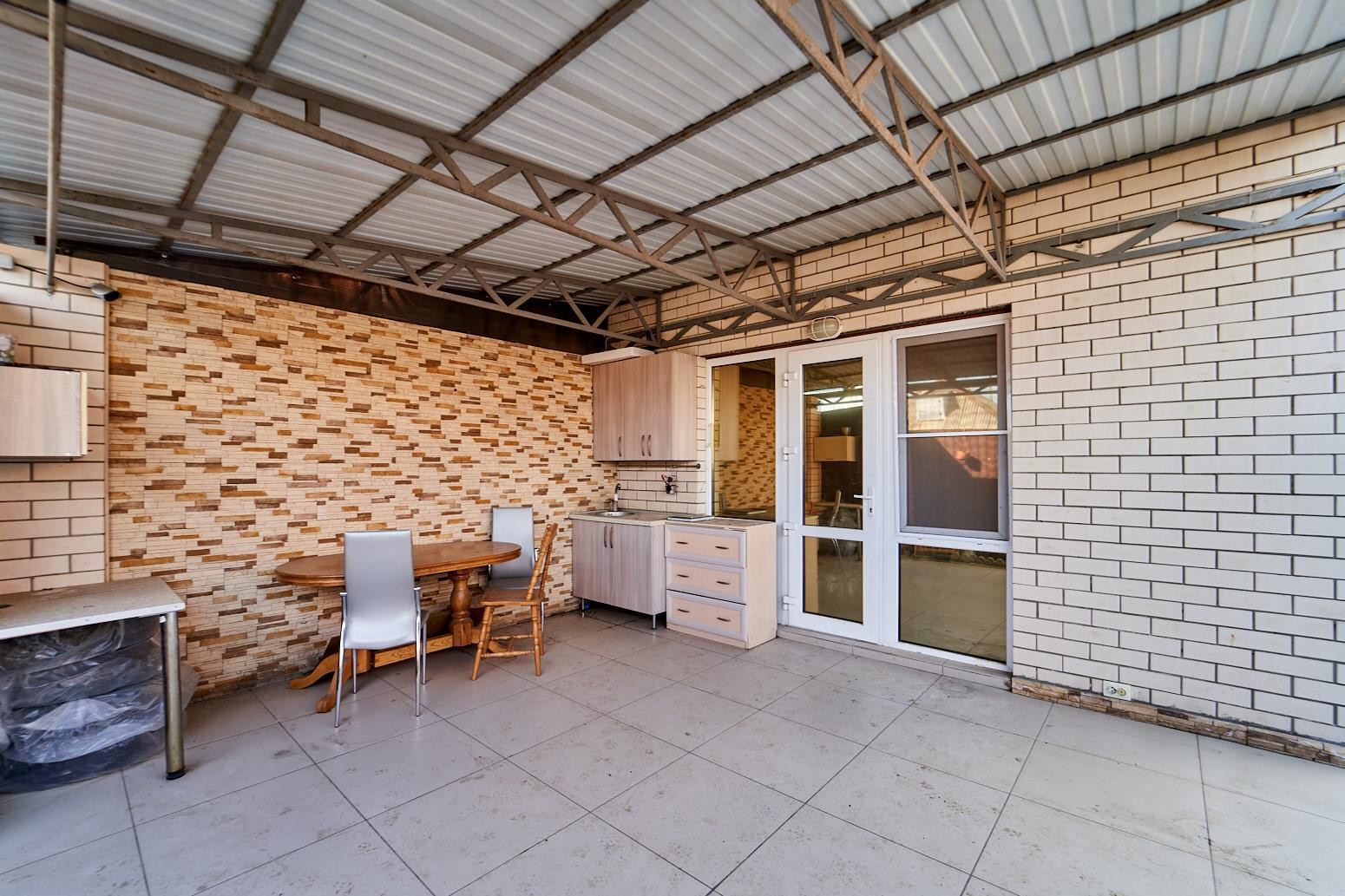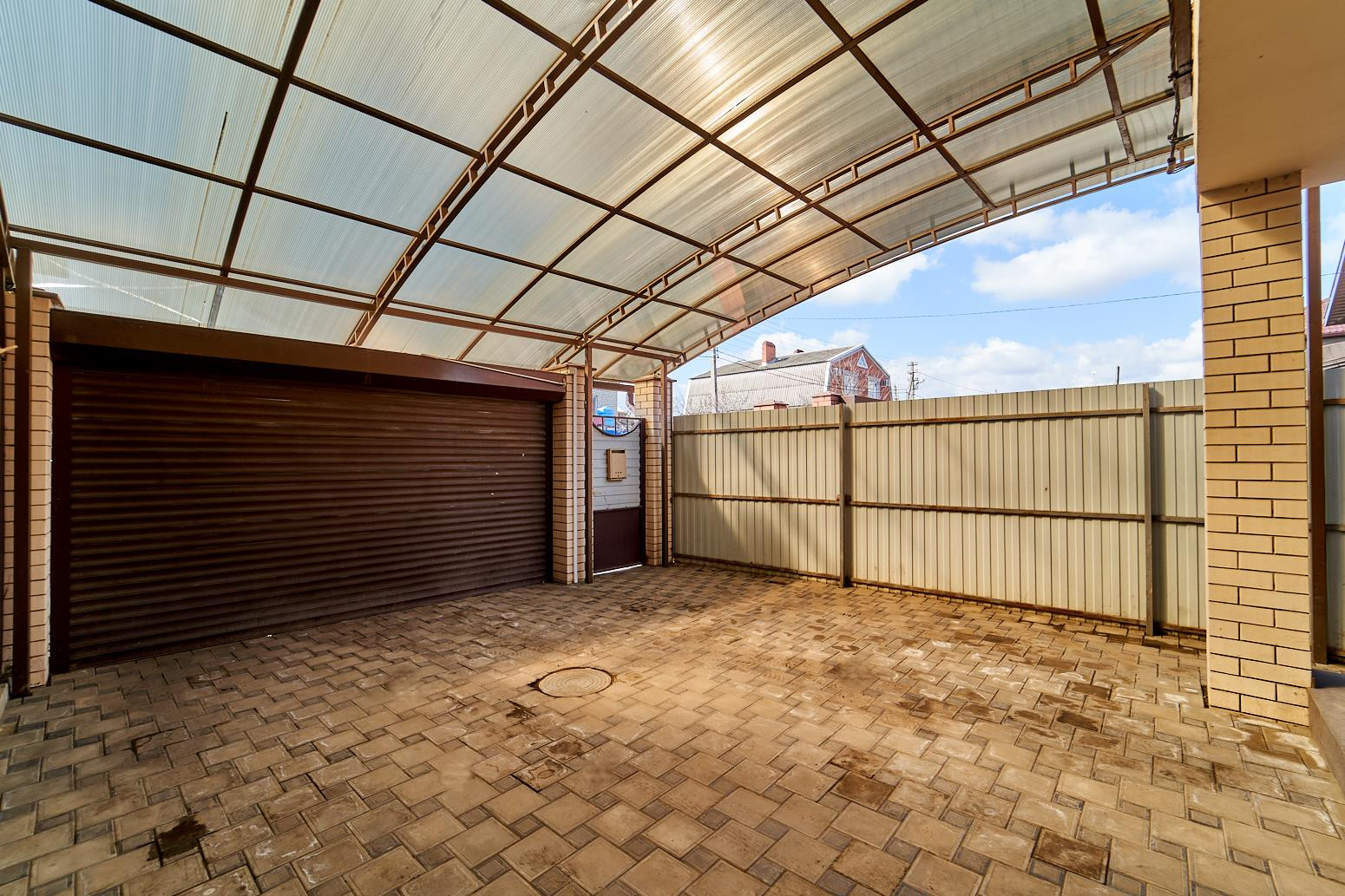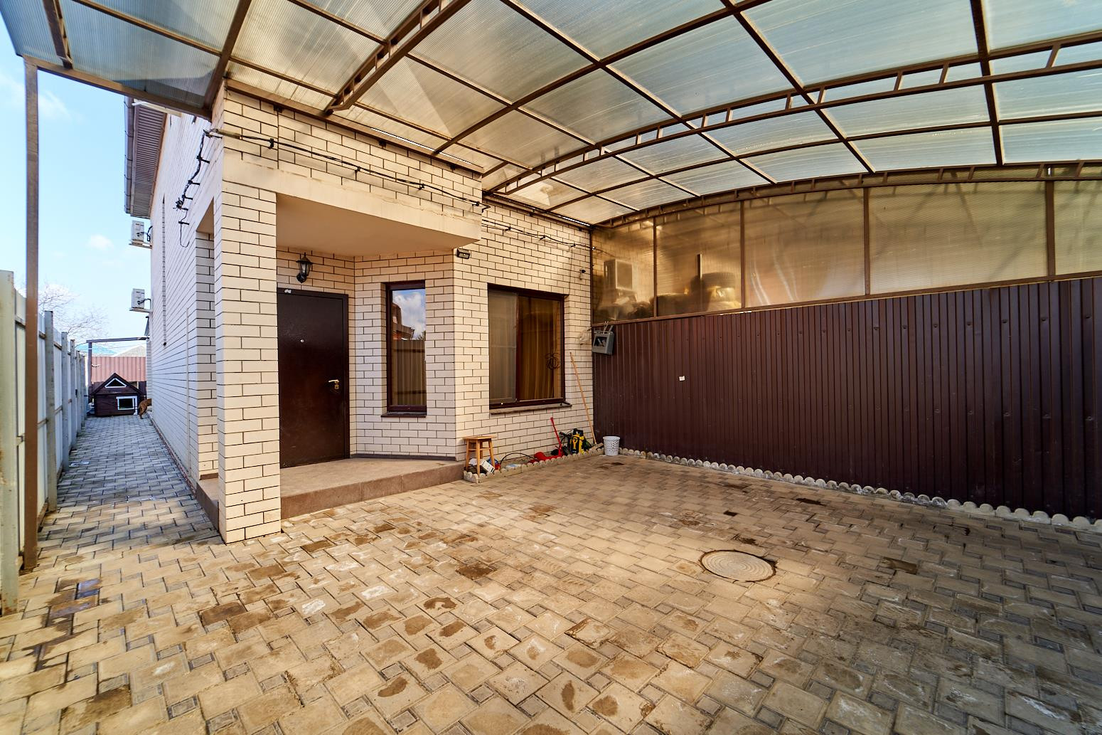 Задний двор веранда с летней кухней, выведена вода (горячая, холодная) электричество. Сейфовый шкаф S=3м3.