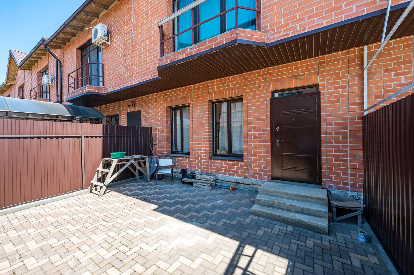 Въезд перед домом оборудован в плитку с широкими воротами в виде роллета для двух автомобилей. Рядом с домом оборудована закрытая детская площадка - Ваши дети будут чувствовать себя в безопасности, вы будете наблюдать за ними со своего балкона с витражным остеклением.