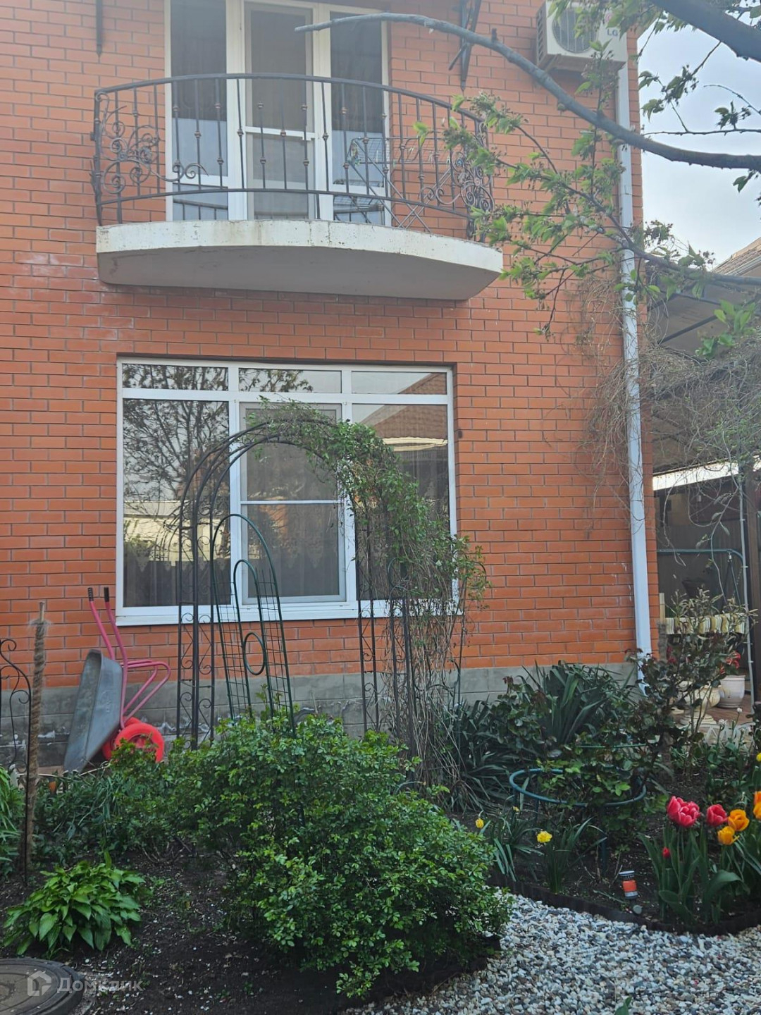 Расположен на участке 3 сотки. Назначение ИЖС. Участок ухоженный, есть небольшой фруктовый сад с кустарниками, въезд для авто. Дом находится рядом с центральной дорогой, что способствует быстрому въезду и выезду из поселка. В посёлке есть спорткомплекс, супермаркет "Пятёрочка", ходит общественный транспорт и школьный автобус. Работает новая школа, детский сад. До остановки общественного транспорта пешком не более 2 минут. Есть все необходимое для комфортной жизни.