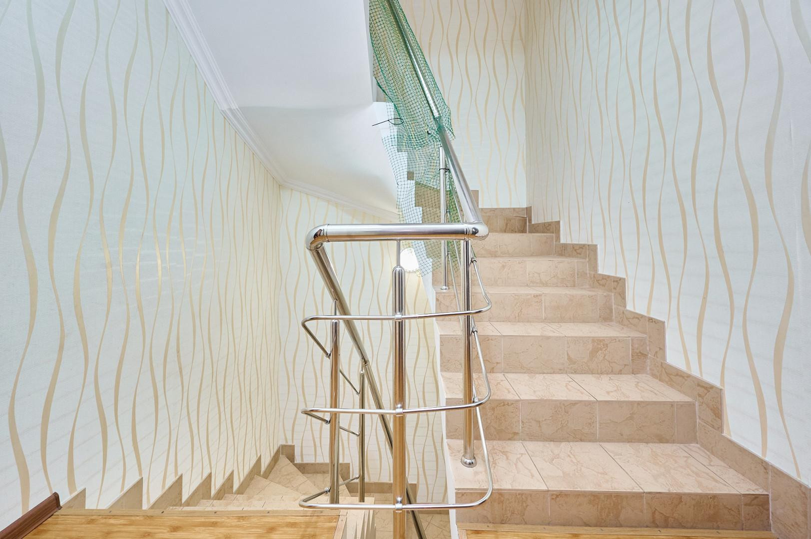 На первом этаже имеется санузел с душевой. Также из кухни-гостиной Вы можете выйти в свой внутренних дворик, где располагается зона BQ. Поднимаемся на второй этаж, и любуемся по ходу красивыми декоративными элементами на стене из мха, который украшает стену - на втором этаже находятся огромная спальня с выходом на балкон и выход в гардеробную, также здесь располагается огромный санузел-душевая и ванная и ещё одна гардеробная находятся здесь.