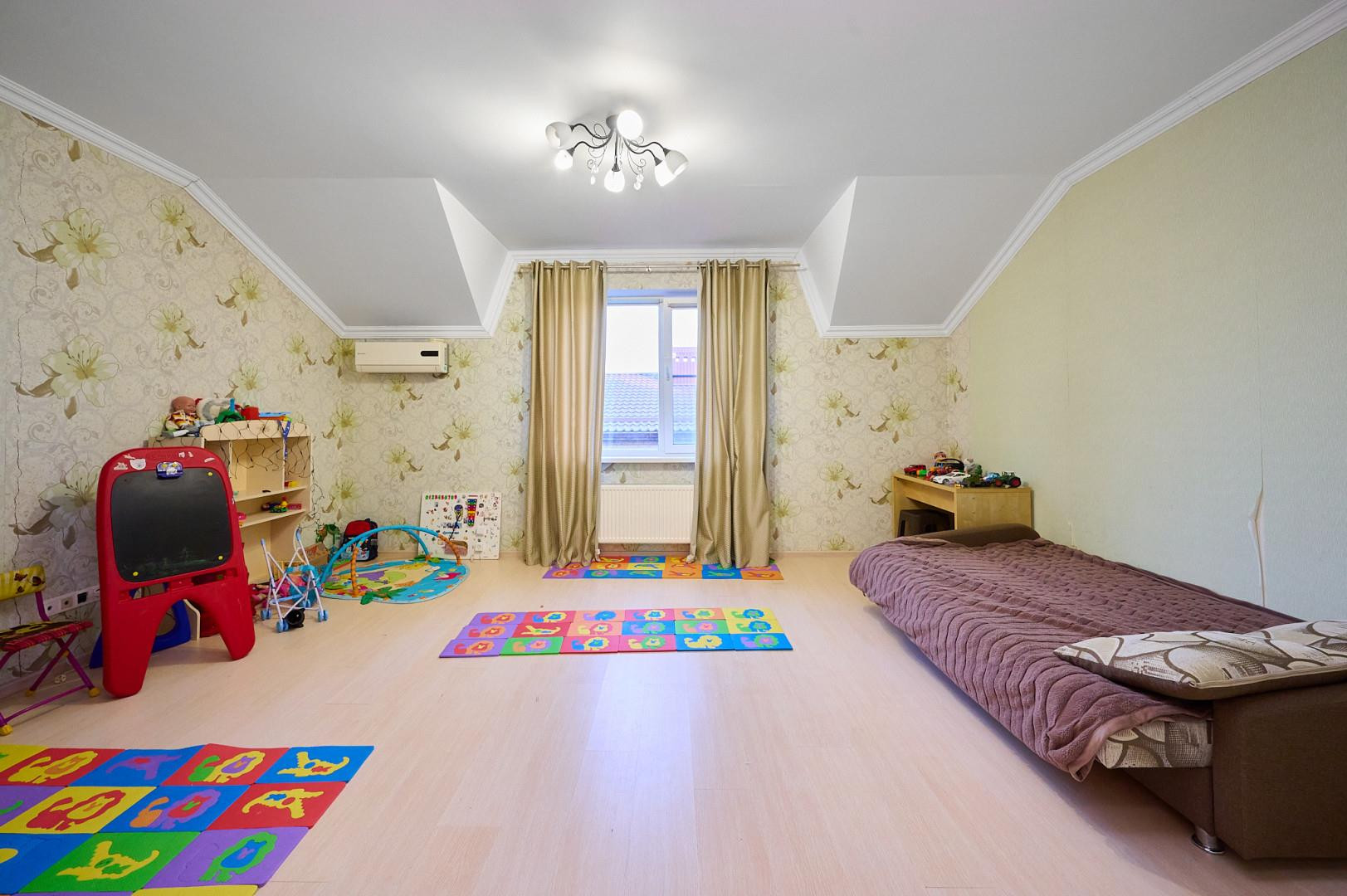 Поднимаемся на третий этаж и видим две спальни- одна детская и другая спальня для гостей, также имеется санузел с ванной.