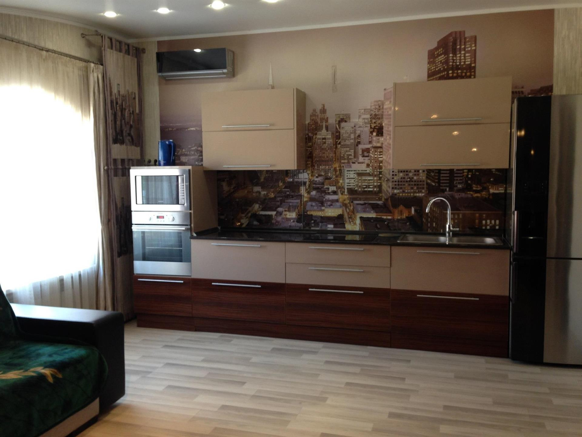 Плита на кухне есть, как электрическая, так и газовая, сами выбираете, как и чем вам пользоваться.