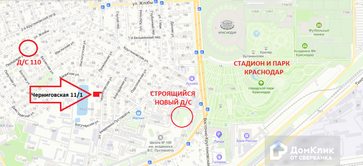Участок 4 сотки расположен в районе стадиона Краснодар и парка Галицкого (Царское Село).