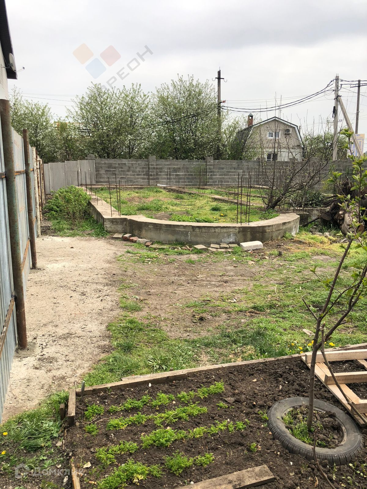 На участке установлен фундамент, есть скважина 40м, свет, газ по меже. По периметру, есть забор с откатными воротами и калиткой, что уменьшает расходы.