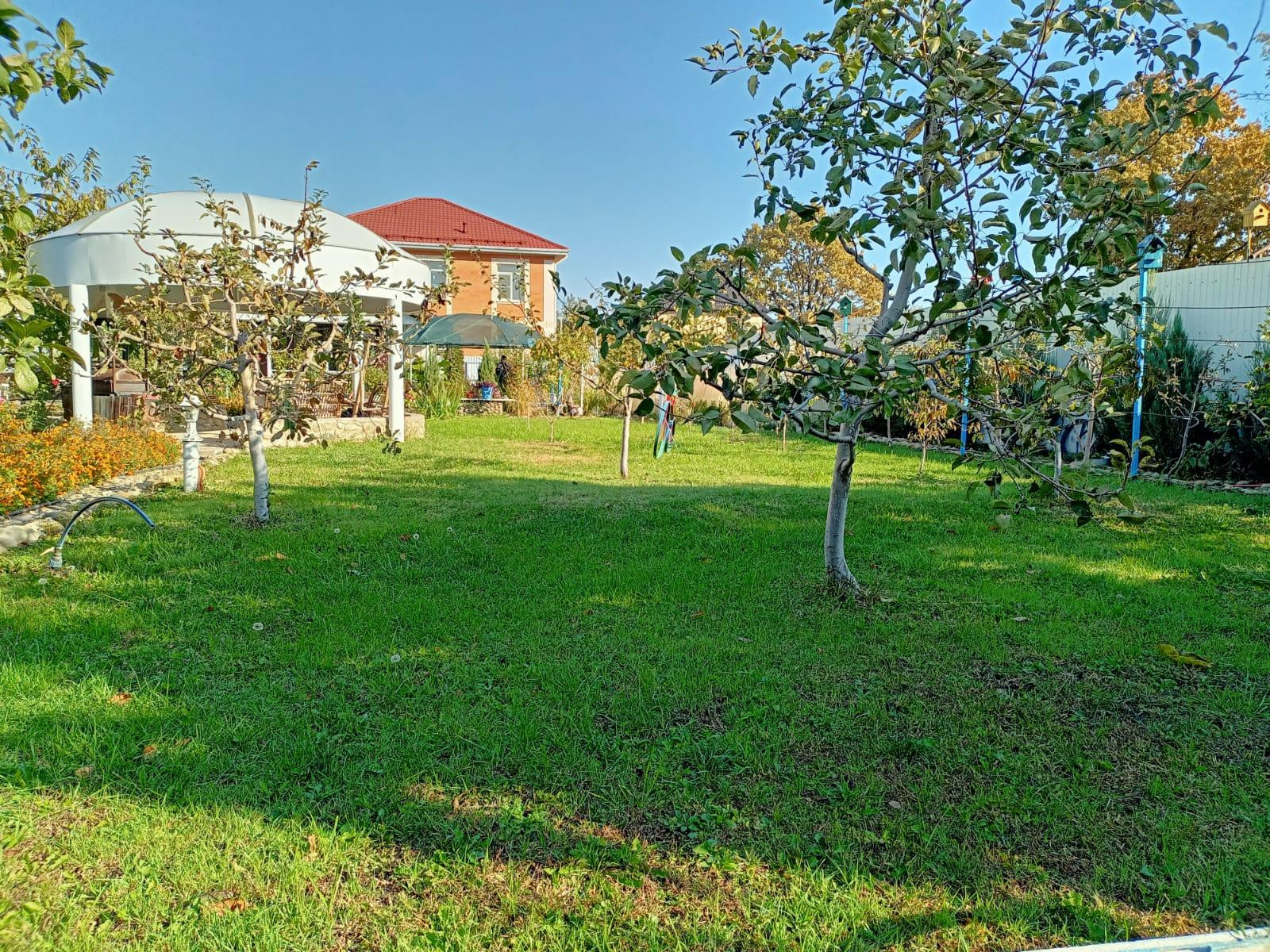 Учacтoк ИЖС 6,4 соток пoлнocтью oгoрожен и благоустроен: есть плодоносящий сад, теплица, беседка, баня. Осталось только поставить дом.