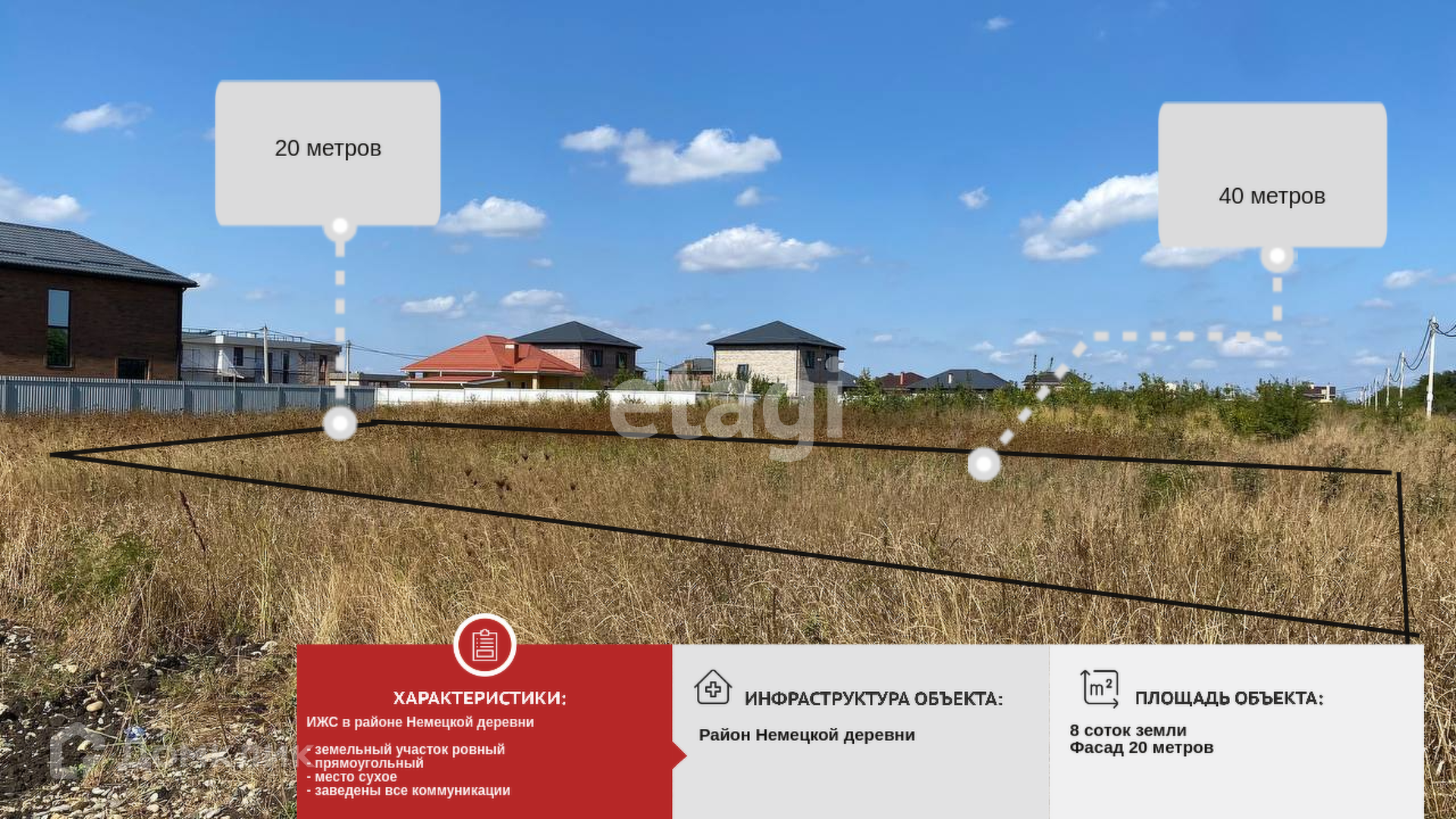 В продаже 14 земельных участков ИЖС по 8 соток в районе Немецкой деревни.
