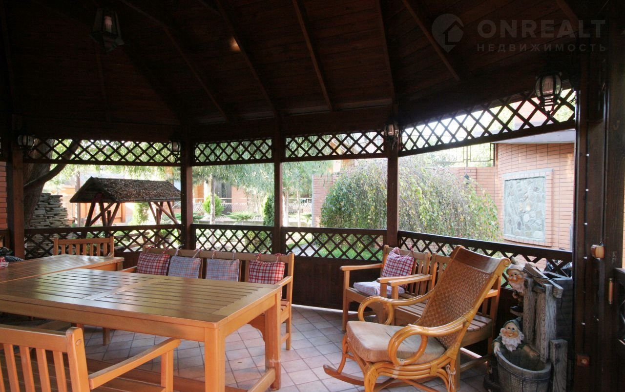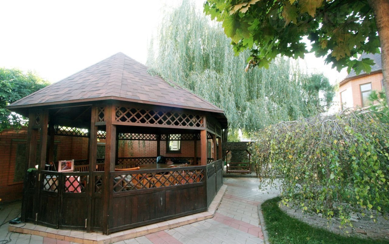 Во дворе ландшафтный дизайн, деревянная беседка.