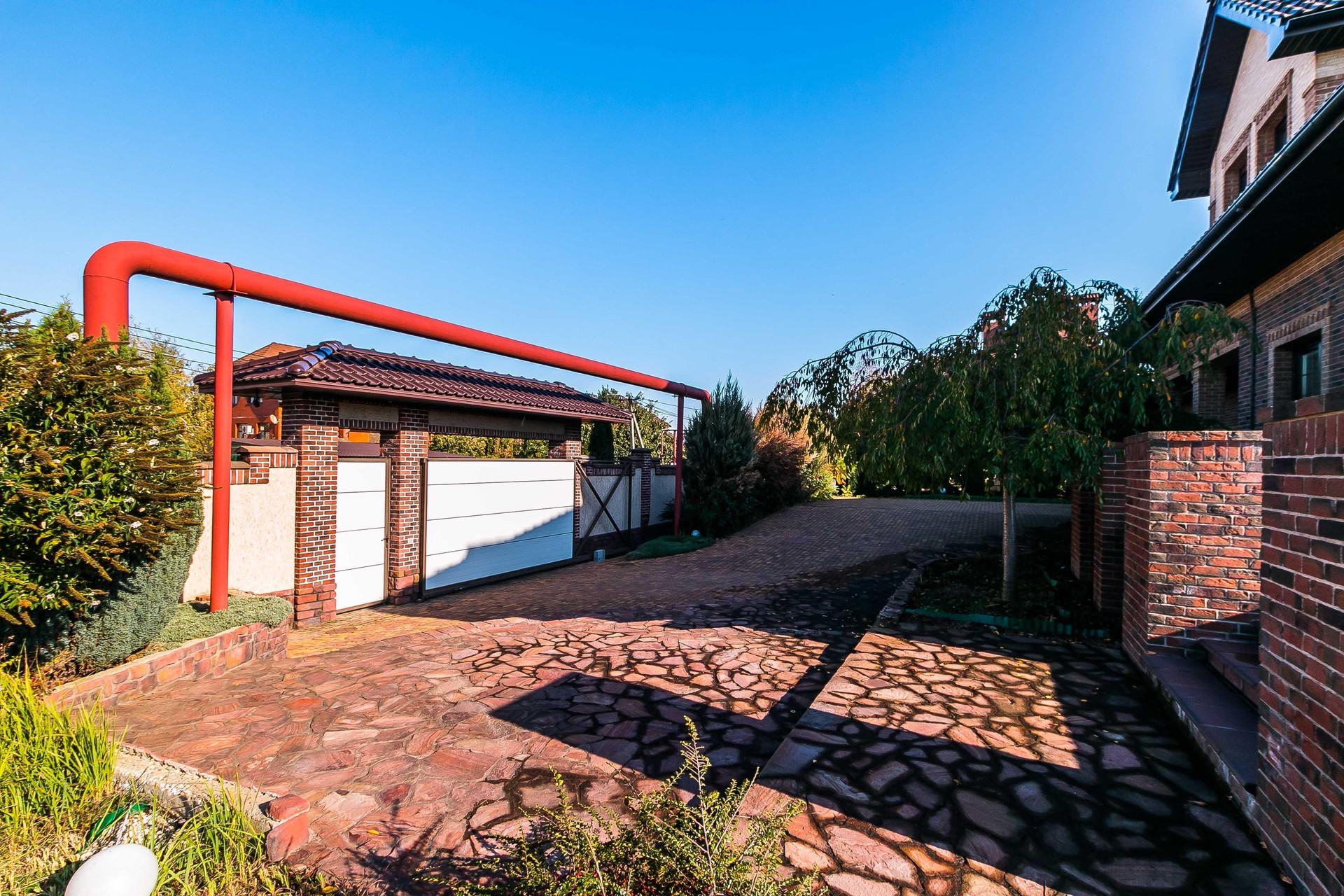 Современное архитектурное решение, стильный дизайн-проект, с использованием дорогих материалов, фасад отделан клинкерным кирпичом, с качественного массива (ясень), межкомнатные двери, дорогие замки, ручки. Всё говорит о качестве жилья.