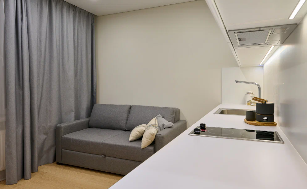 Функциональная квартира с уютной кухней-гостиной и лоджией. Много света и открытого пространства!