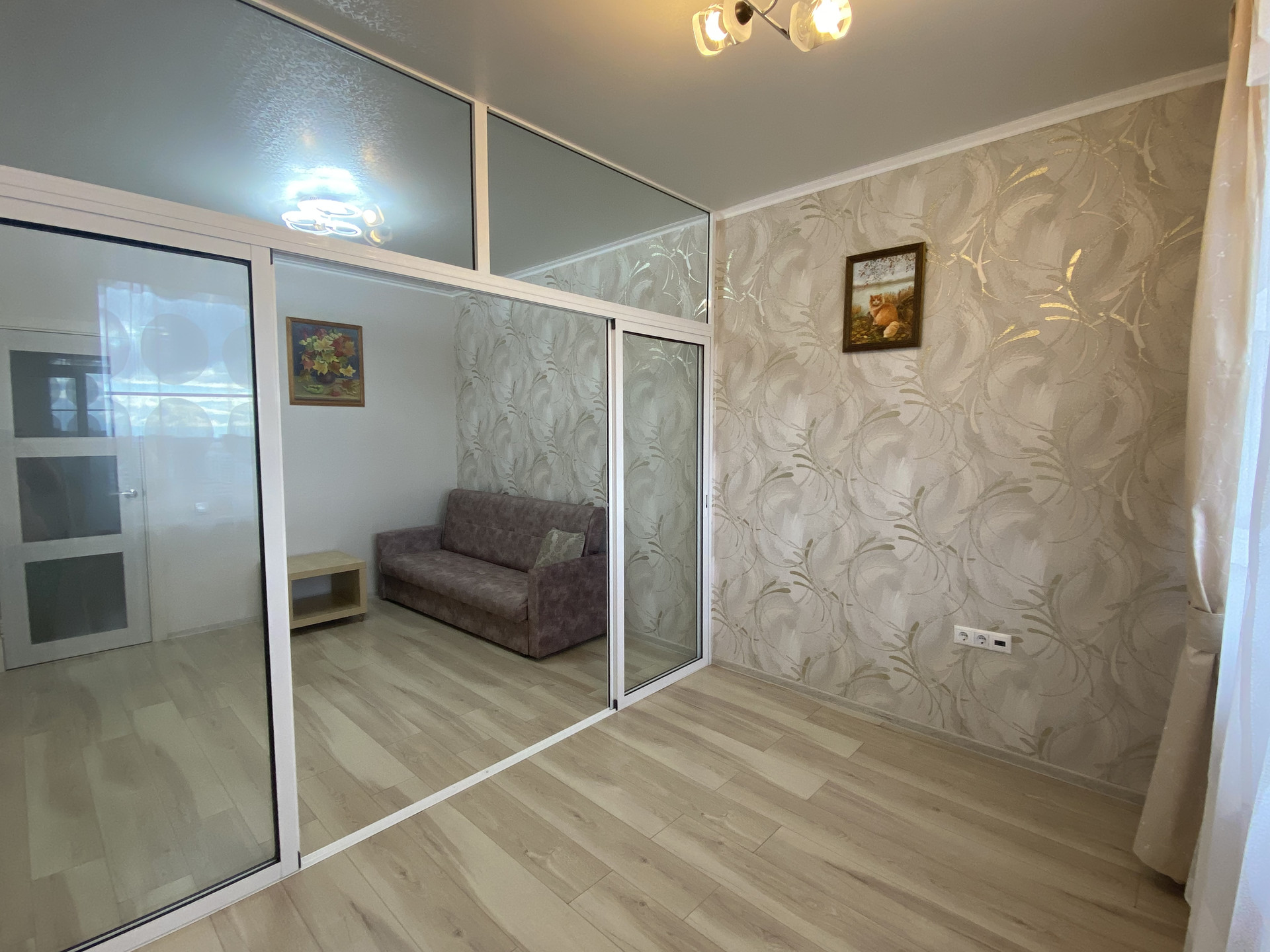 Комната (17 кв.м.) разделена раздвижной перегородкой-купе на две зоны. Можно сделать детскую комнату, отделить спальню от гостиной или кабинет. Идеально подойдет для обустройства, если у вас имеется своя мебель. С реальным арендатором готова обсудить дозакупку мебели при необходимости.