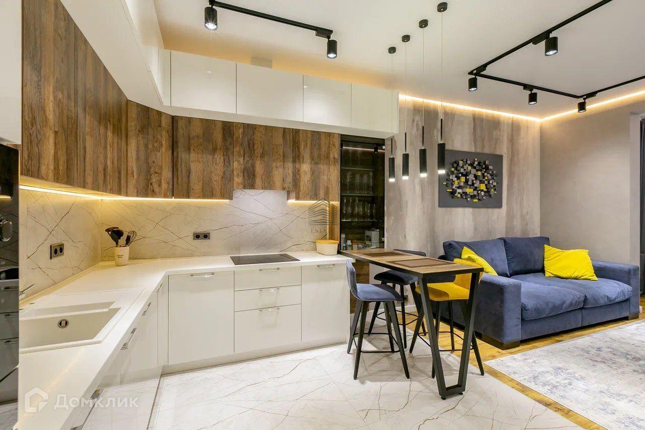 Квартира находится на 22 этаже . Из окон открываются потрясающие виды на историческую часть города. Планировка: общ. S=77 м, 2 спальни и кухня-гостиная, В квартире сделан дизайнерский ремонт.