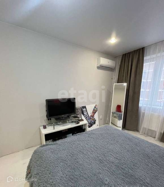 В квартире есть мебель, холодильник, микроволновка, кондиционер, посуда, стиральная машина, кровать, телевизор, большой шкаф для одежды в коридоре, утюг, гладильная доска, чайник.