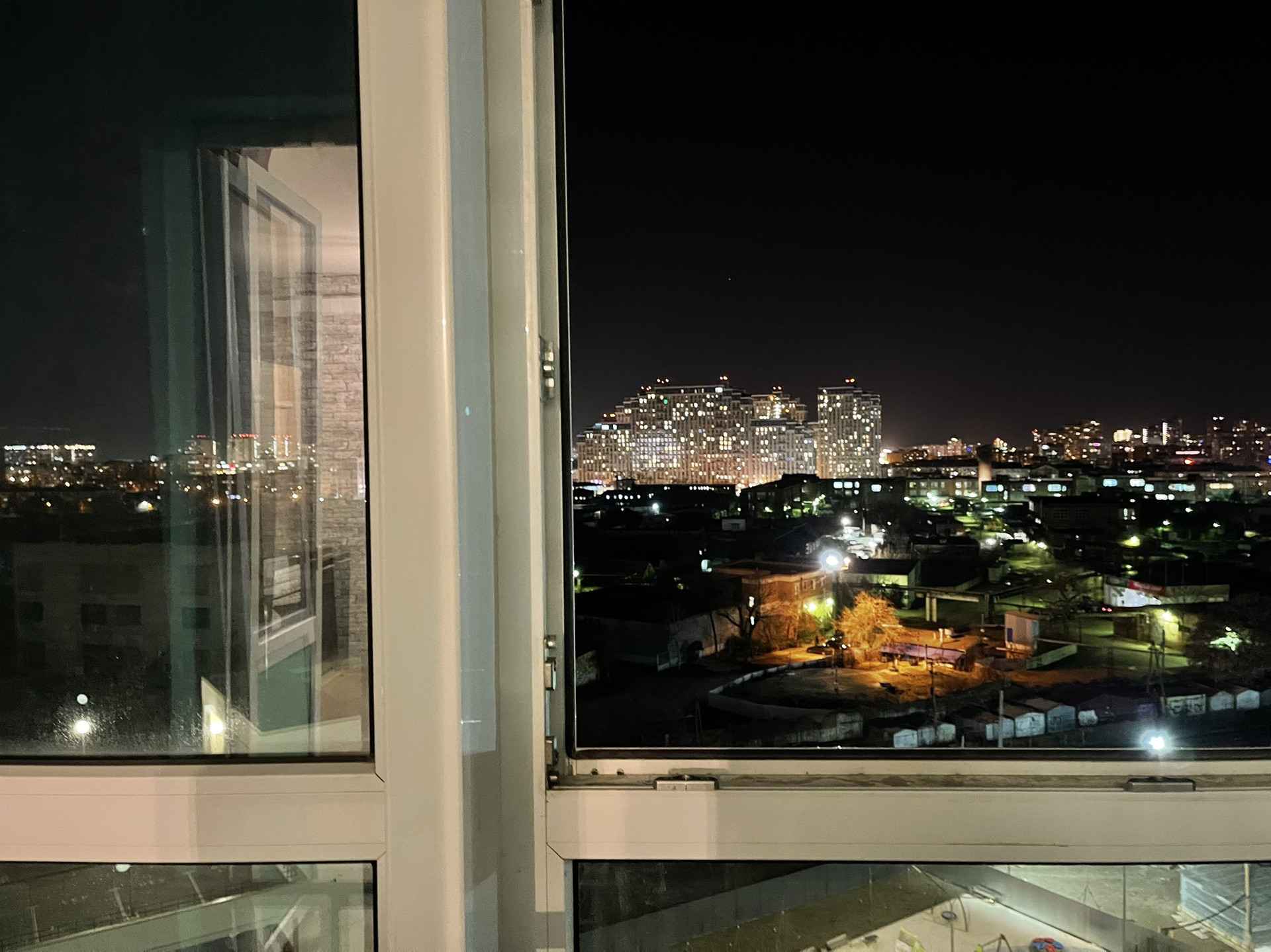 Красивый вид. Лоджия с витражным остеклением.