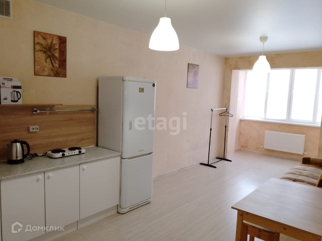 Сдается однокомнатная квартира на длительный срок. В квартире имеется вся необходимая мебель: стиральная машинка, холодильник, чайник, электроплита, стол, стулья, диван - кровать, напольная вешалка, частично посуда,на окнах рулонные шторы.