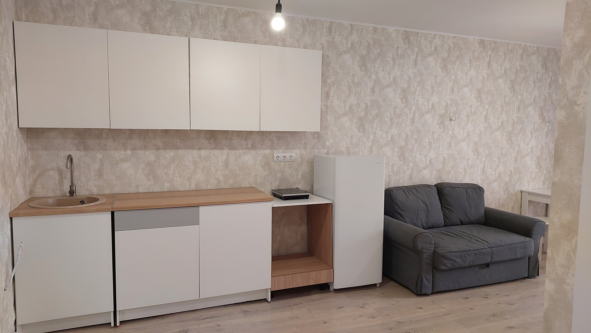 В квартире просторная кухня-гостинная с полноценным спальным местом и спальня с двуспальной кроватью. Большая лоджия полностью утеплена, установлен теплый пол, она полностью жилая. Можно обустроить рабочий кабинет, детскую игровую, зону отдыха либо дополнительное хранение .