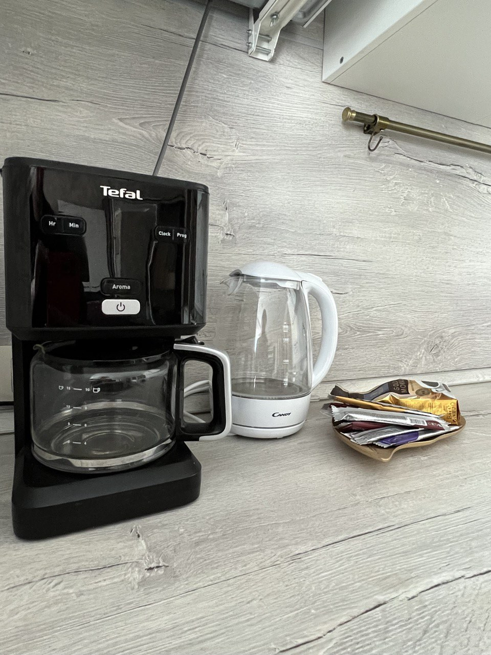 холодильник , чайник , кофеварка .