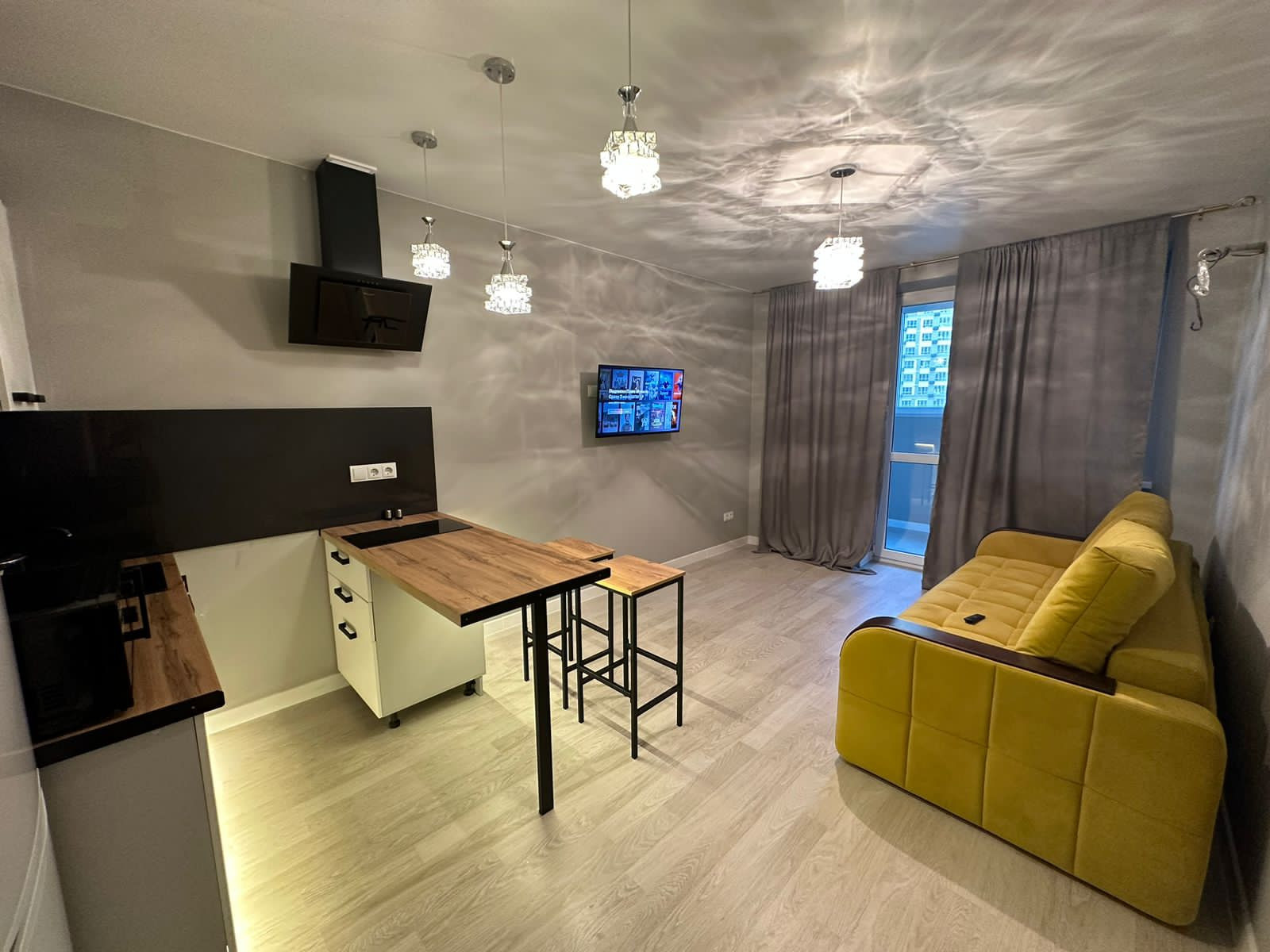 квартира с хорошим ремонтом и имеется всё для проживания, а именно: тёплые полы на балконе с радиатором, кухонный гарнитур, эл.плита, холодильник, микроволновка, чайник, вытяжка, диван, телевизор, стиральная машина, кондиционер, шторы и т.д.