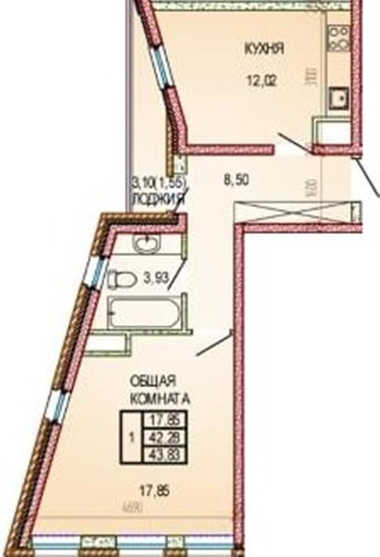Общая площадь 44 м2
