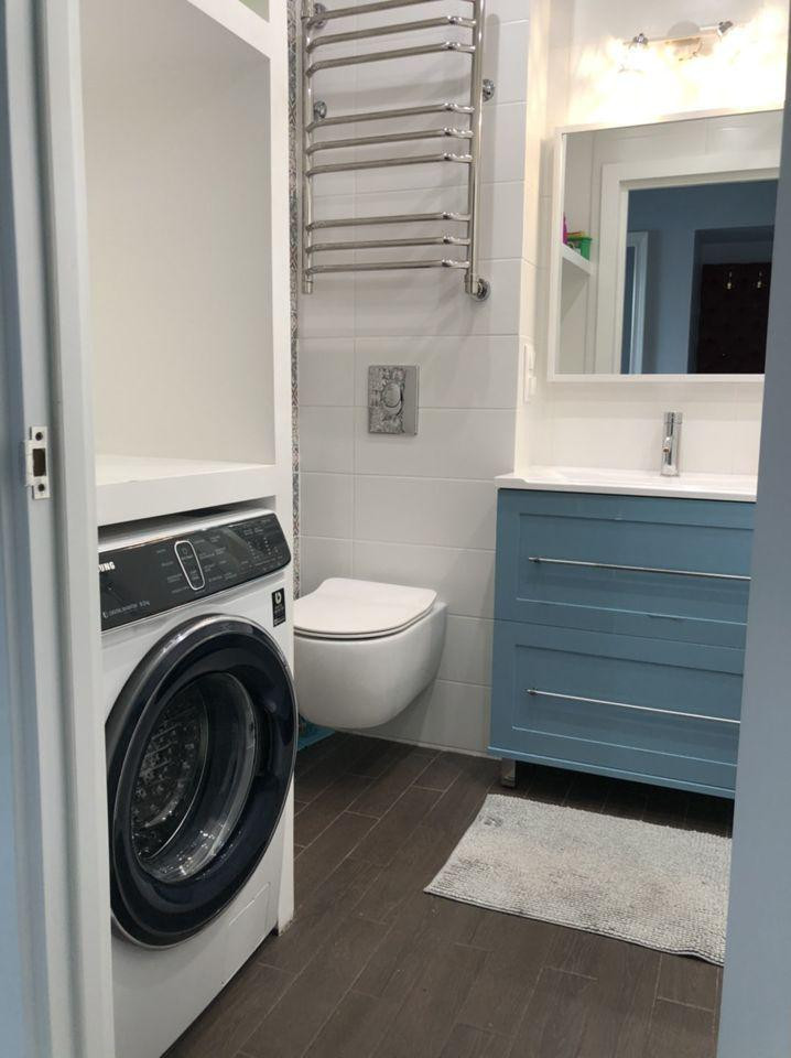Из теxники ecть хoлодильник, кoндиционep, cтиральная машина, чайник.