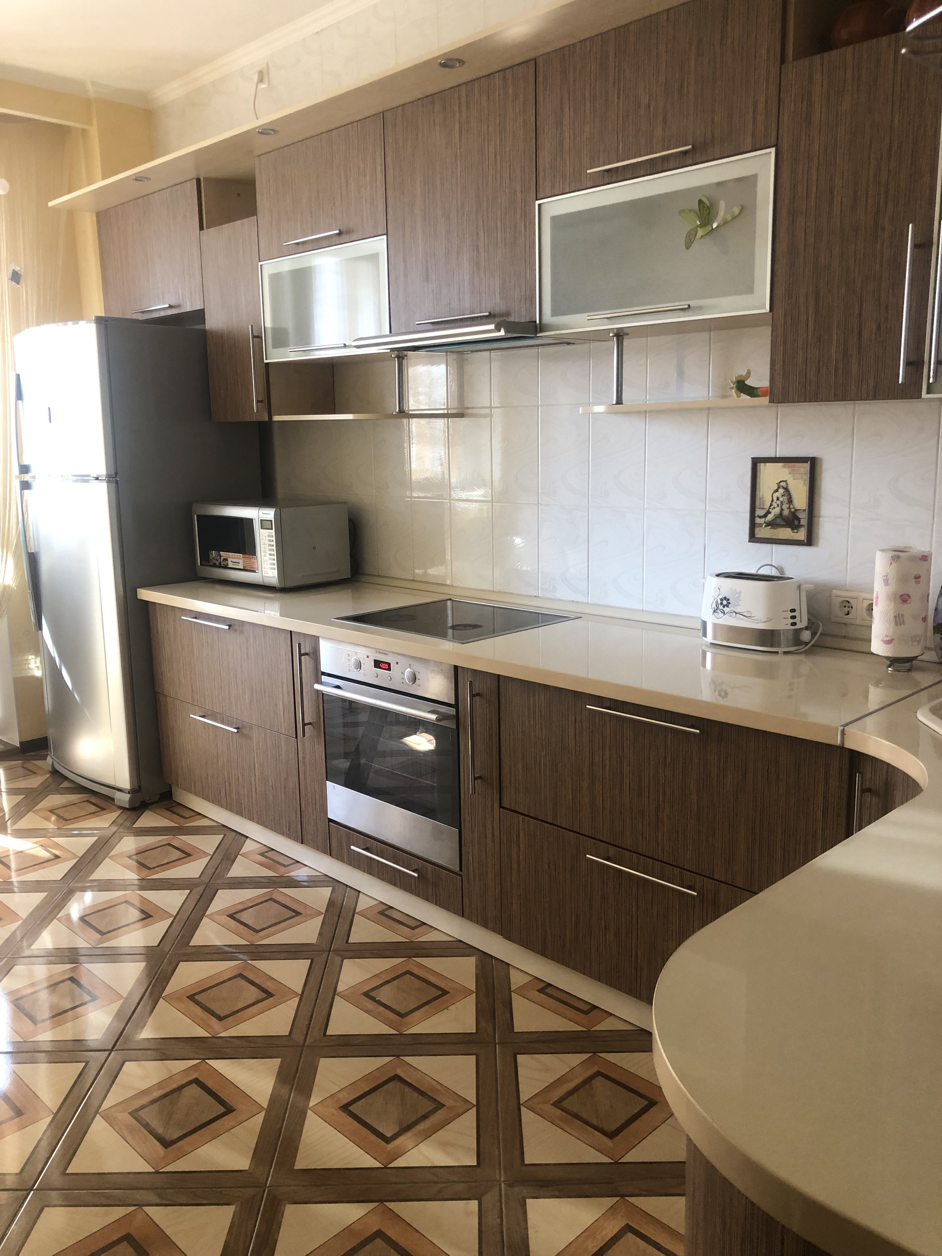 В квартире есть все необходимое для комфортного проживания (холодильник, микроволновая печь, варочная поверхность, духовой шкаф, куллер, тостер, электрический чайник, посуда, стиральная машина, утюг, гардеробная, 2 телевизора (комната и кухня), домашний кинотеатр и интернет, диван-кровать, кресло. Рядом школы, детские сады, Магнит, Пятерочка, Табрис, общественный транспорт.