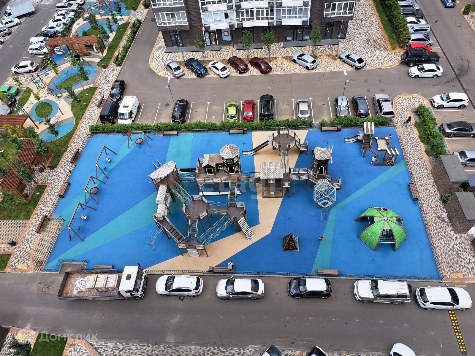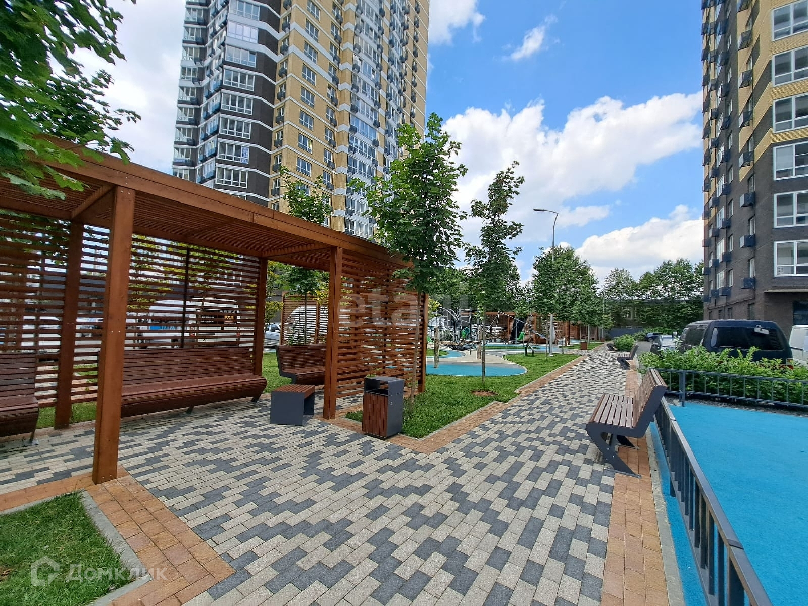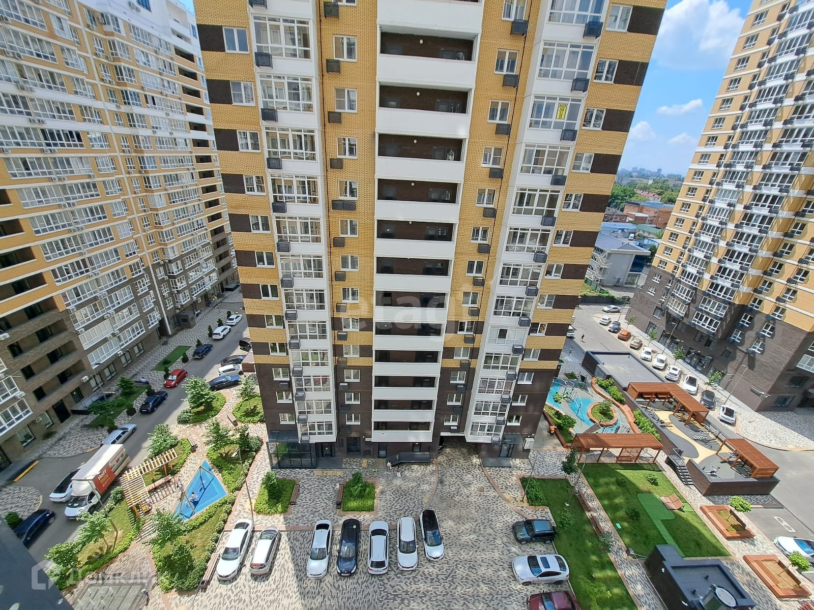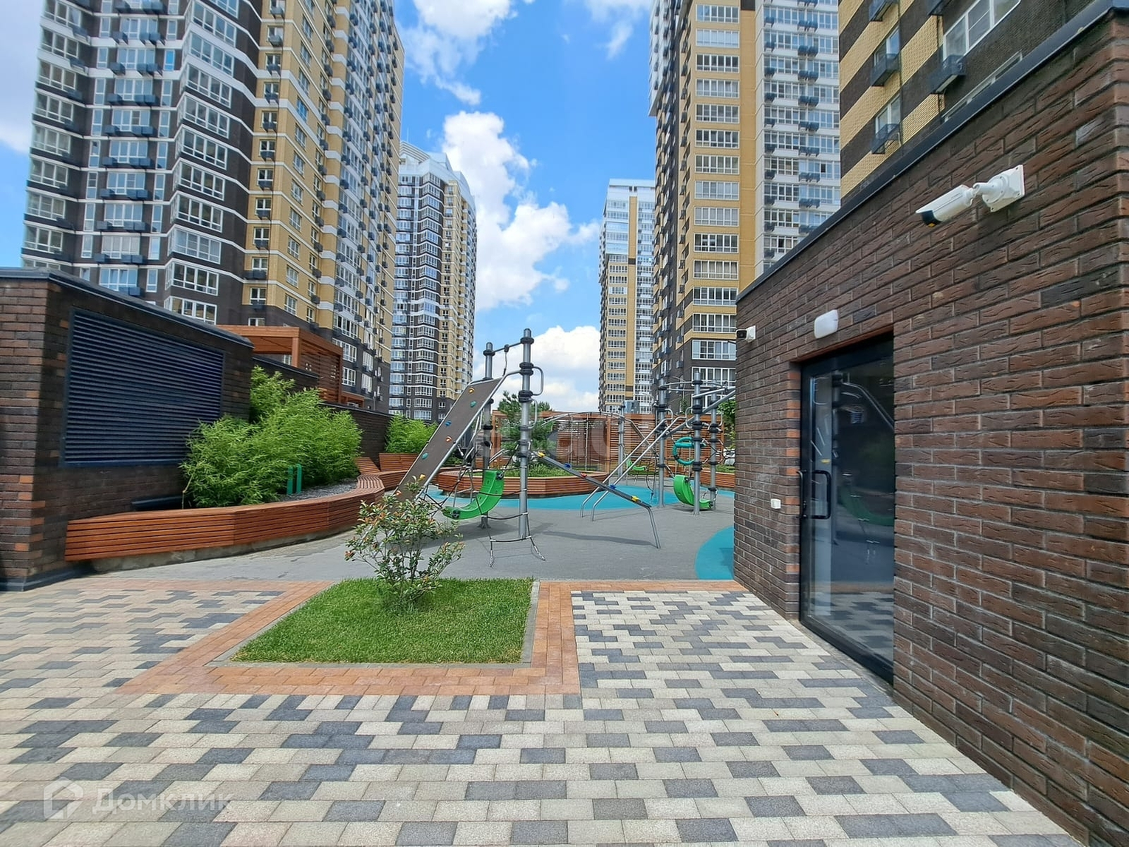 Закрытая придомовая территория с видео-наблюдением, зоны отдыха и спортивных тренажеров, фонтан, консьерж, всегда есть место для парковки автомобиля.