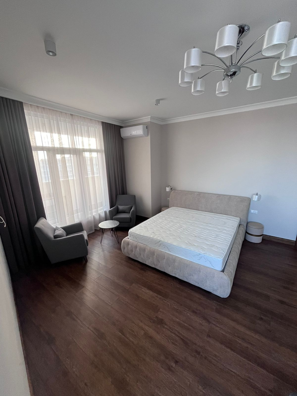 Выполнен высококачественный ремонт, по дизайн-проекту, Две изолированные спальные комнаты, гостиная комната проходная, 2 санузла. Кухня с витражными окнами. Квартира укомплектована мебелью и бытовой техникой, в спальных комнатах установлены двуспальные кровати, шкафы.