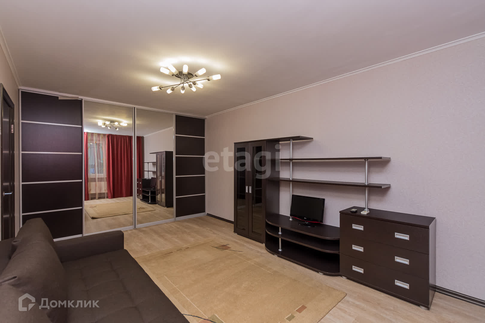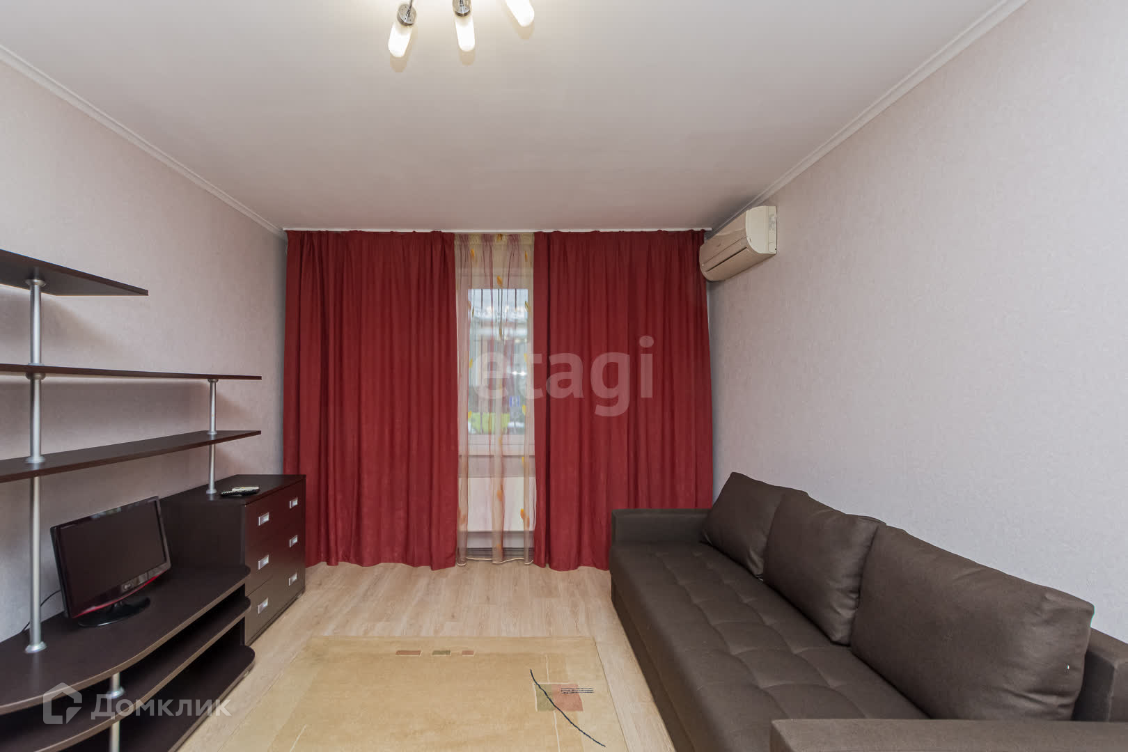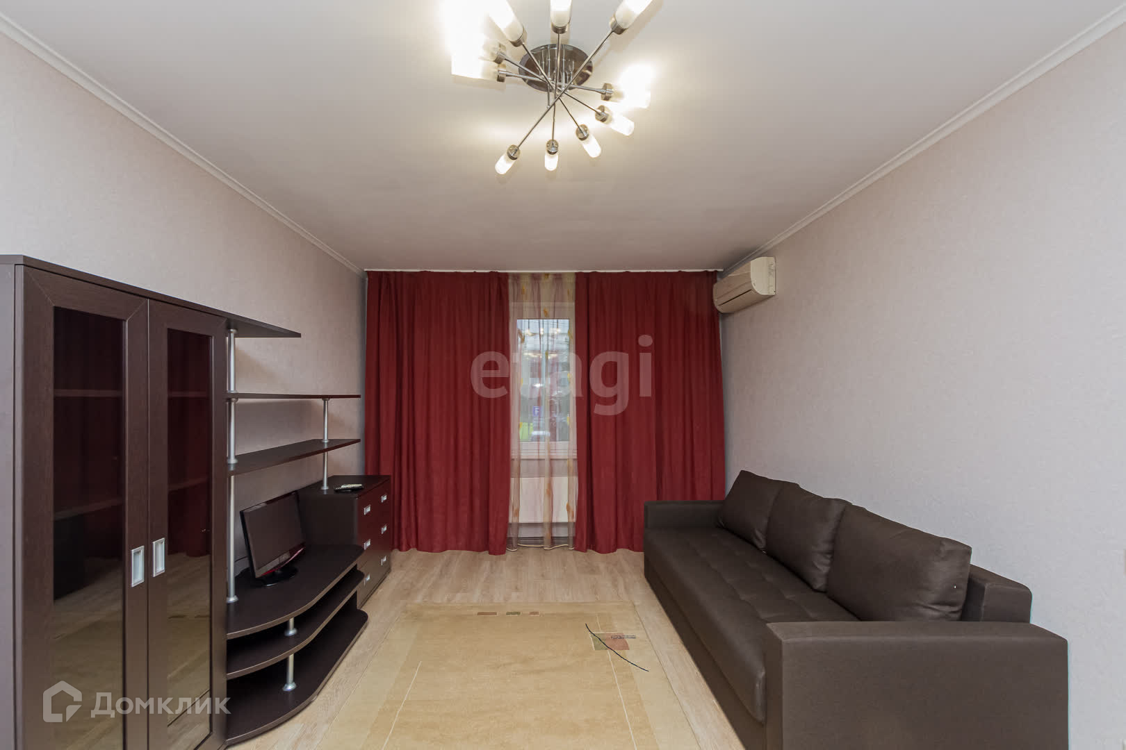 Спальная комната оборудована: Большим диваном ,кондиционером, ,шторы блокируют попадание света в комнату полностью,шкаф для хранения одежды, телевизор с приставкой, практичный стеллаж.