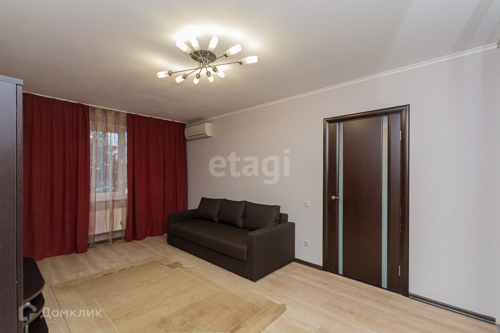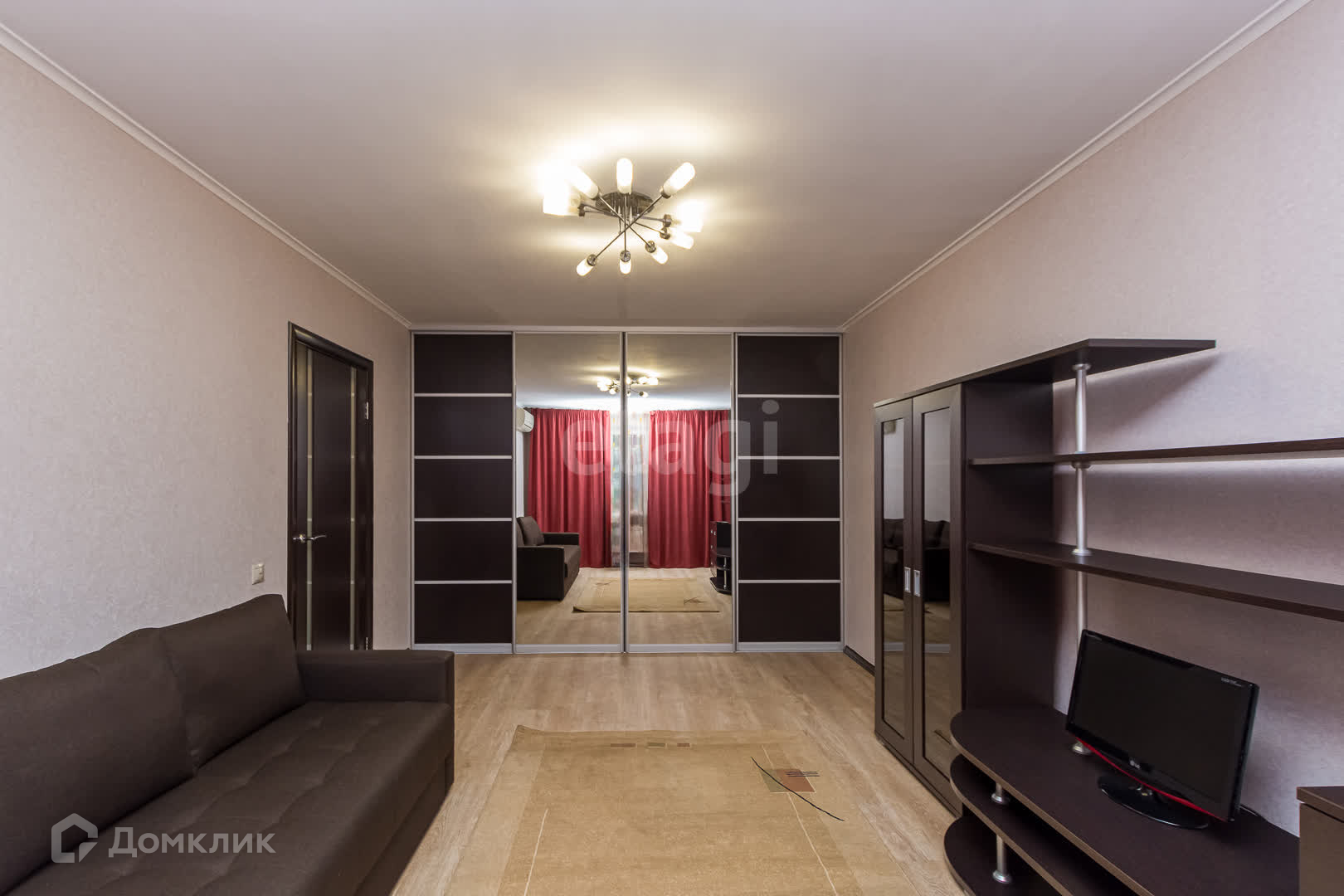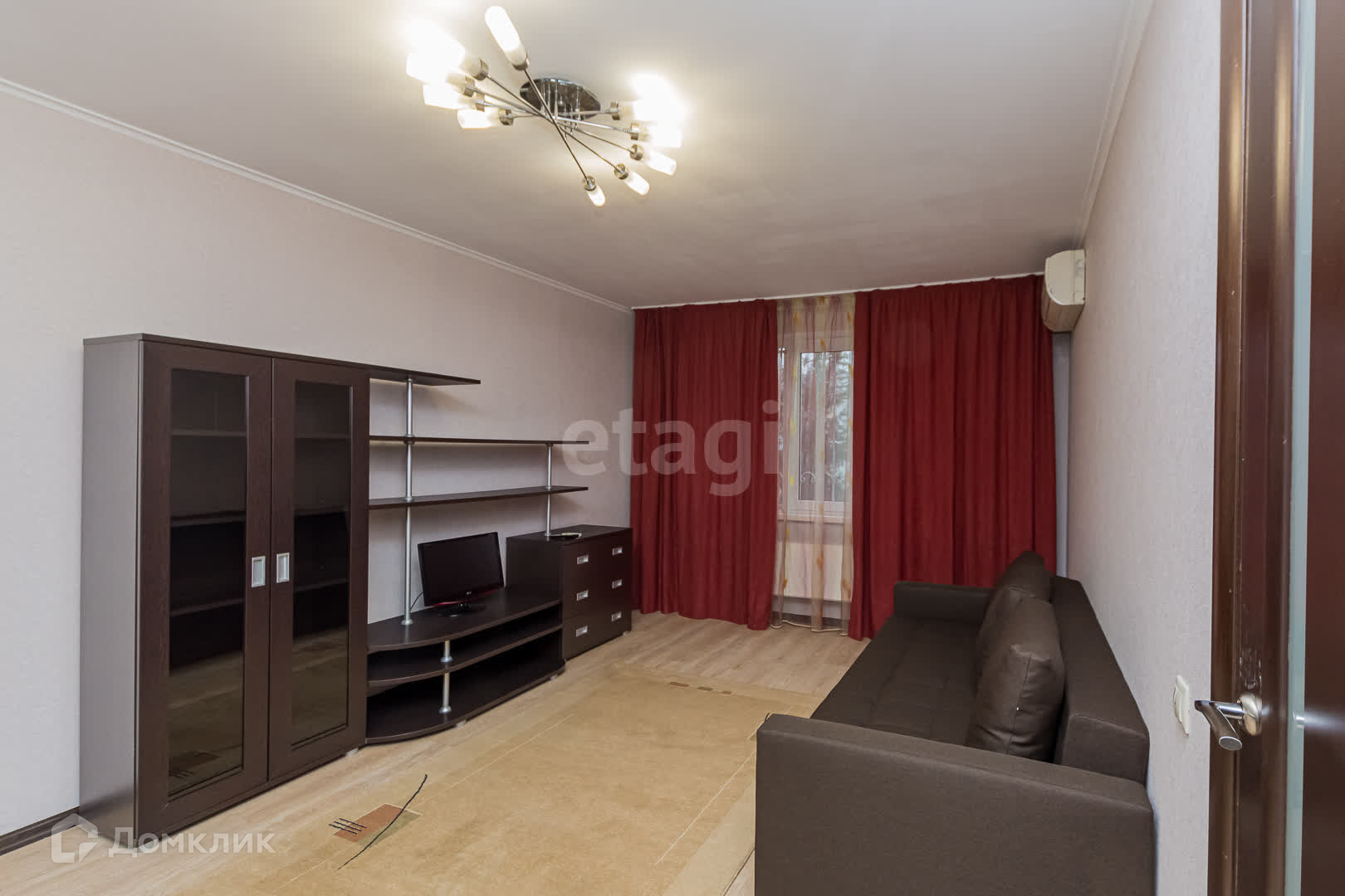 Спальная комната оборудована: Большим диваном ,кондиционером, ,шторы блокируют попадание света в комнату полностью,шкаф для хранения одежды, телевизор с приставкой, практичный стеллаж.