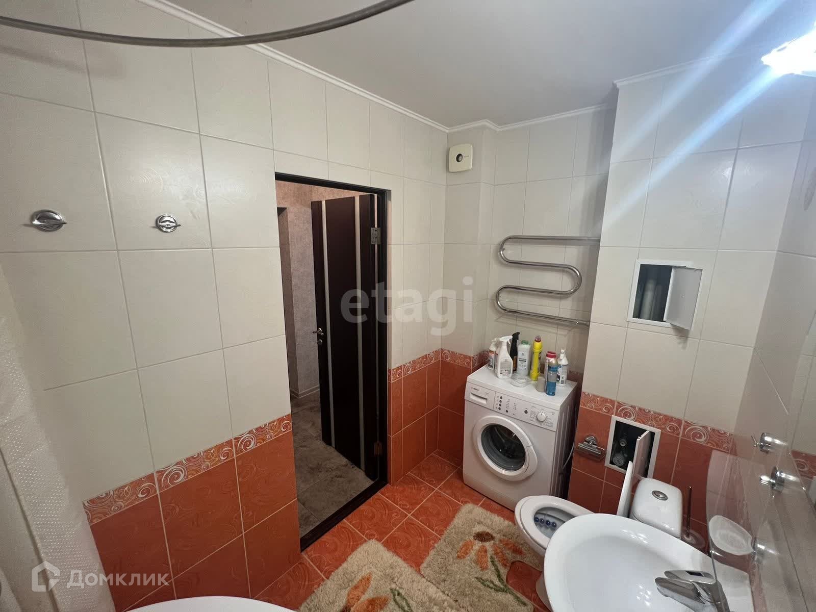 Санузел совмещенный оборудован стиральной машиной.