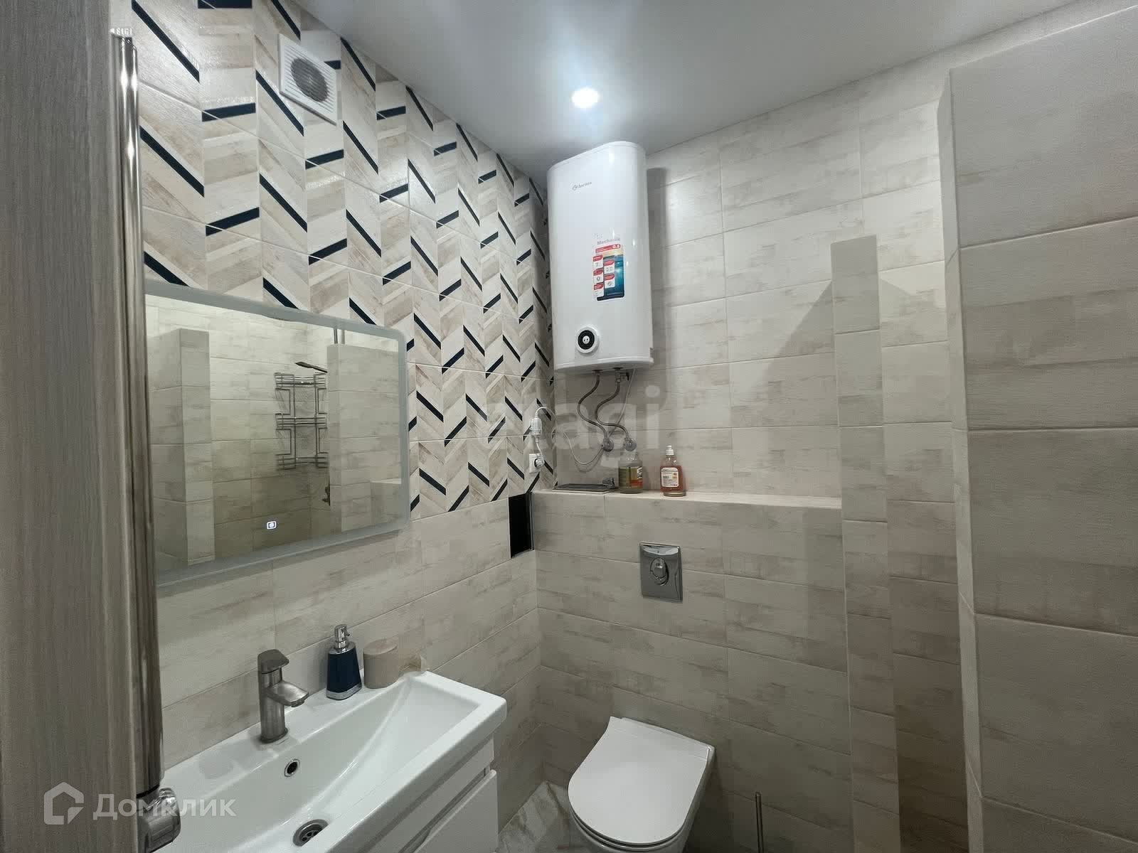 Санузел совмещенный оборудован водонагревателем что позволяет быть не зависимыми от подачи и напора горячей воды.
