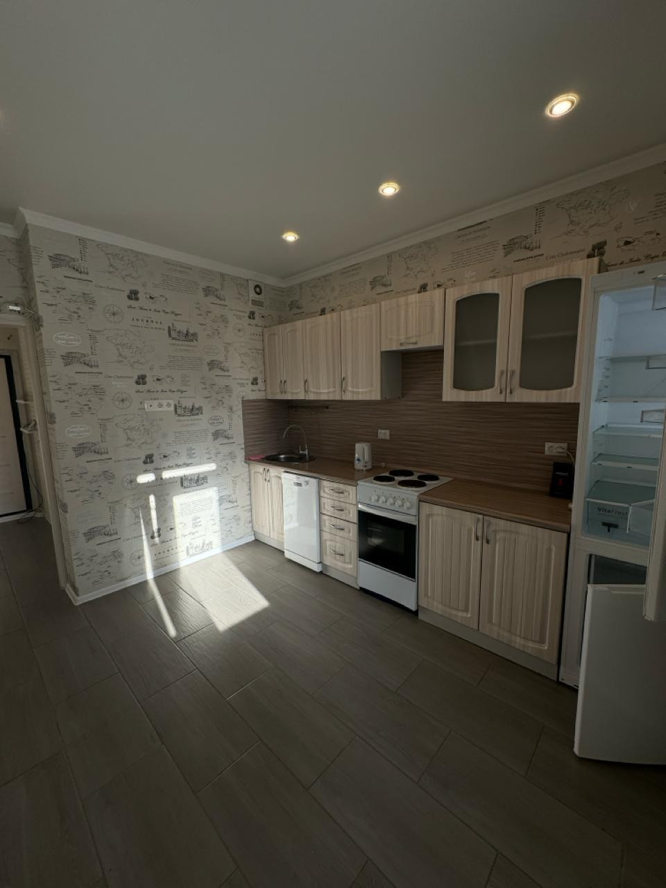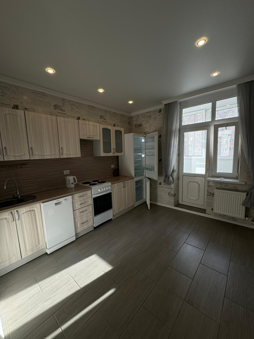 Просторная однокомнатная квартира в современном районе города. Хороший ремонт. Частично мебель (если необходимо, мебель можно докупить), техника. На длительный срок, без животных.