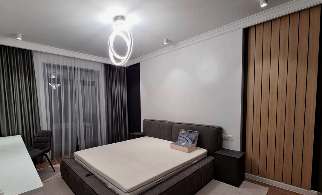Квартира площадью 58,9 м2, с евроремонтом - одновременно уютный и эстетичный, новая мебель и техника, все в идеальном состоянии. Такой ремонт сочетает в себе удобство и стиль. В жилой комнате есть  двуспальная кровать, комод, шкаф, туалетный столик. Ванная комната совмещенная.