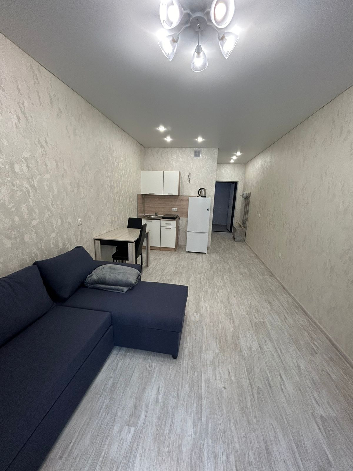 Сдается уютная, светлая студия на 16 этаже, в новом районе Комфорт- класса, на длительный период. В студии есть необходимое для проживания. Огромное достоинство- школа и детские сады. Для детей имеются площадки, для взрослых - мангальные зоны, где можно жарить шашлыки и проводить время.  Есть прогулочная зона, фонтаны, торговые центры и много магазинов.