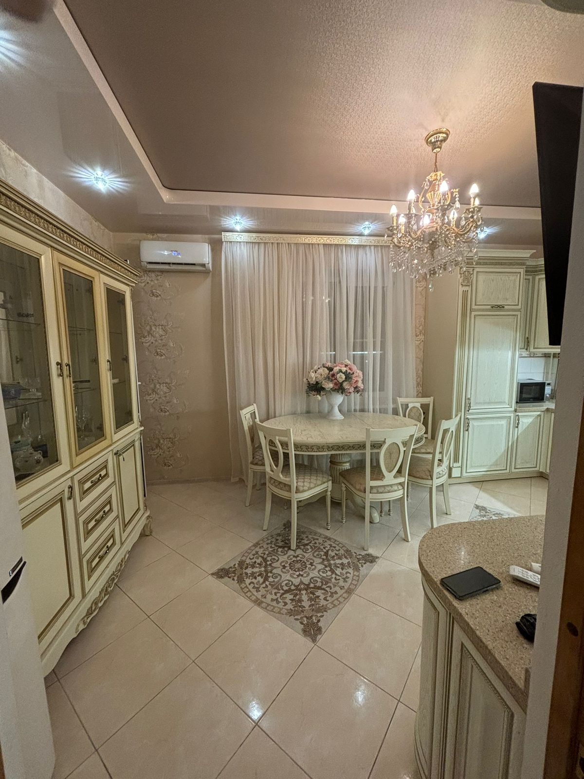 Квартира имеет две совмещенные ванны комнаты, одна из которых оборудована ванной, а другая - душевой кабиной. В квартире есть вся необходимая техника: кондиционеры, холодильник, телевизоры, посудомоечная машина и стиральная машина. Комнаты меблированы, поэтому можно сразу заехать и жить. Также в квартире имеется балкон выход из комнаты и кухни. Квартира очень просторная, идеальный вариант для большой семьи.