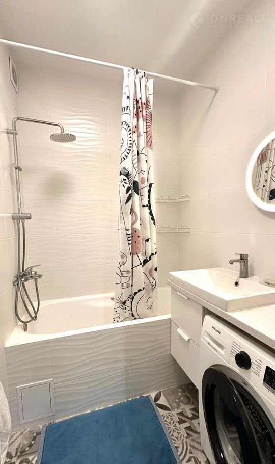 * В ванной: дополнительная батарея для тепла, зеркало, стиральная машина, удобные полочки.
