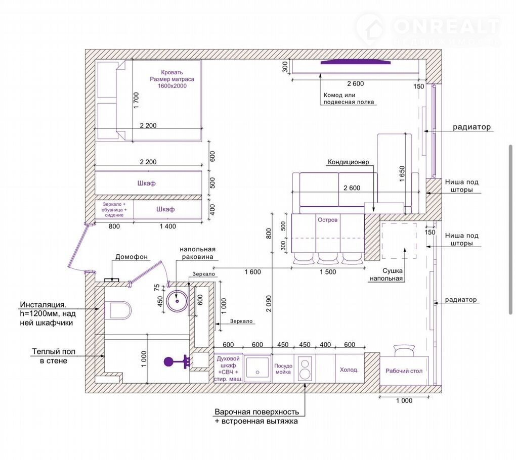 Квартира полностью обустроена, из техники: стиральная машина, микроволновка, духовка, холодильник, телевизор Хiаоmi со смарт тв 55 дюймов, кондиционер, посудомойка.