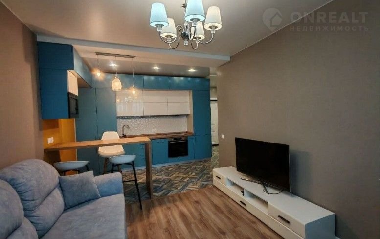 Квартира полностью укомплектована качественной встраиваемой бытовой техникой и мебелью. Планировка: гостиная с кухней + спальня.