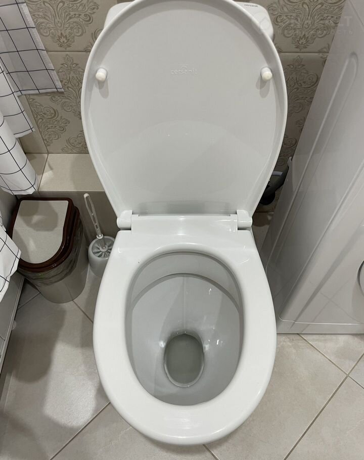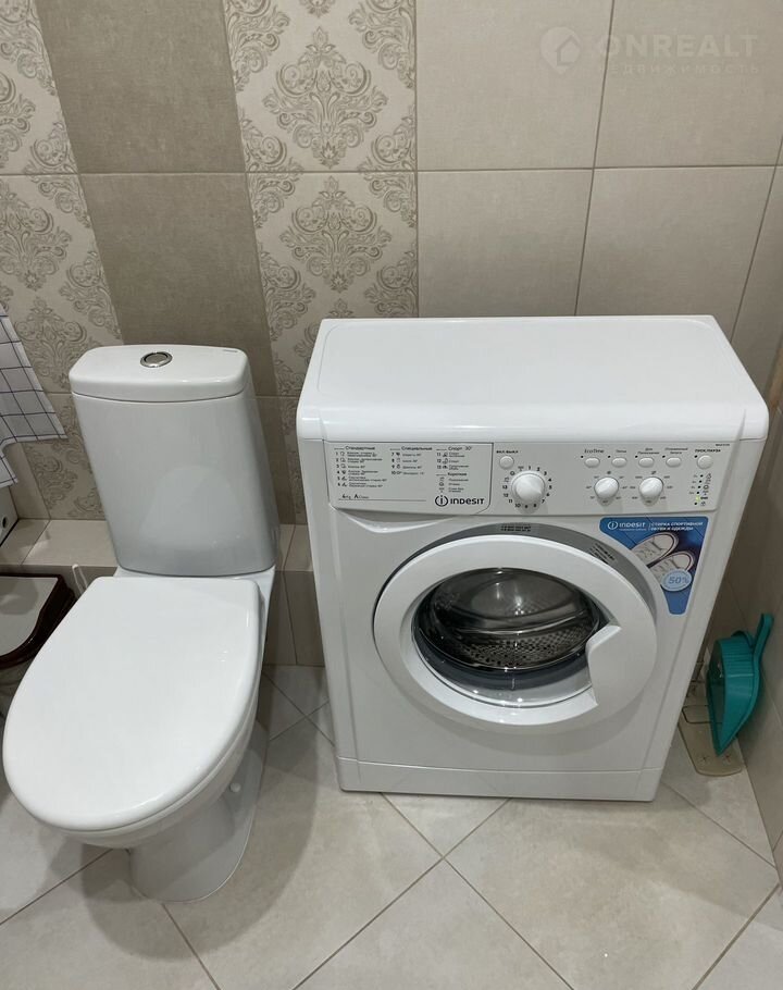 Ванная: Унитаз, стиральная машина, умывальник, зеркало, акриловая ванная.