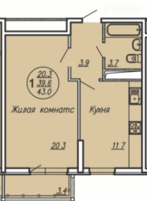 Общая площадь 43 м2